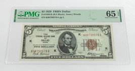 1929 National Dallas Fr #1850-K (Ka Block) Graded By PMG Gem UNC 65 EPQ- show...