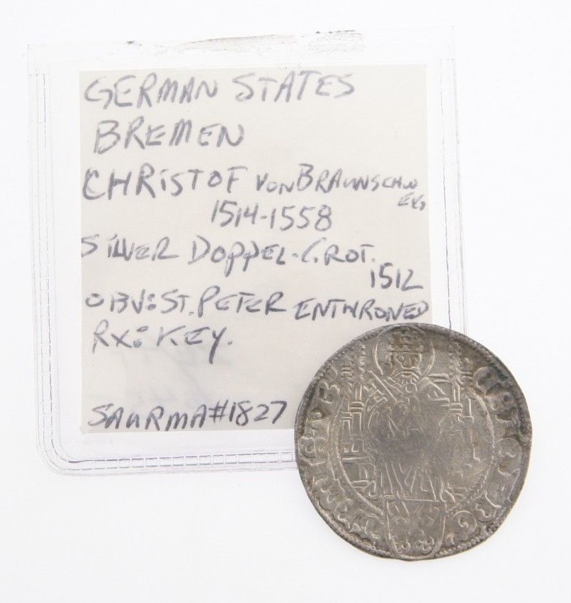 1514-1558 German States Bremen Silver Grote Christof Braunschweig St Peter Ke...