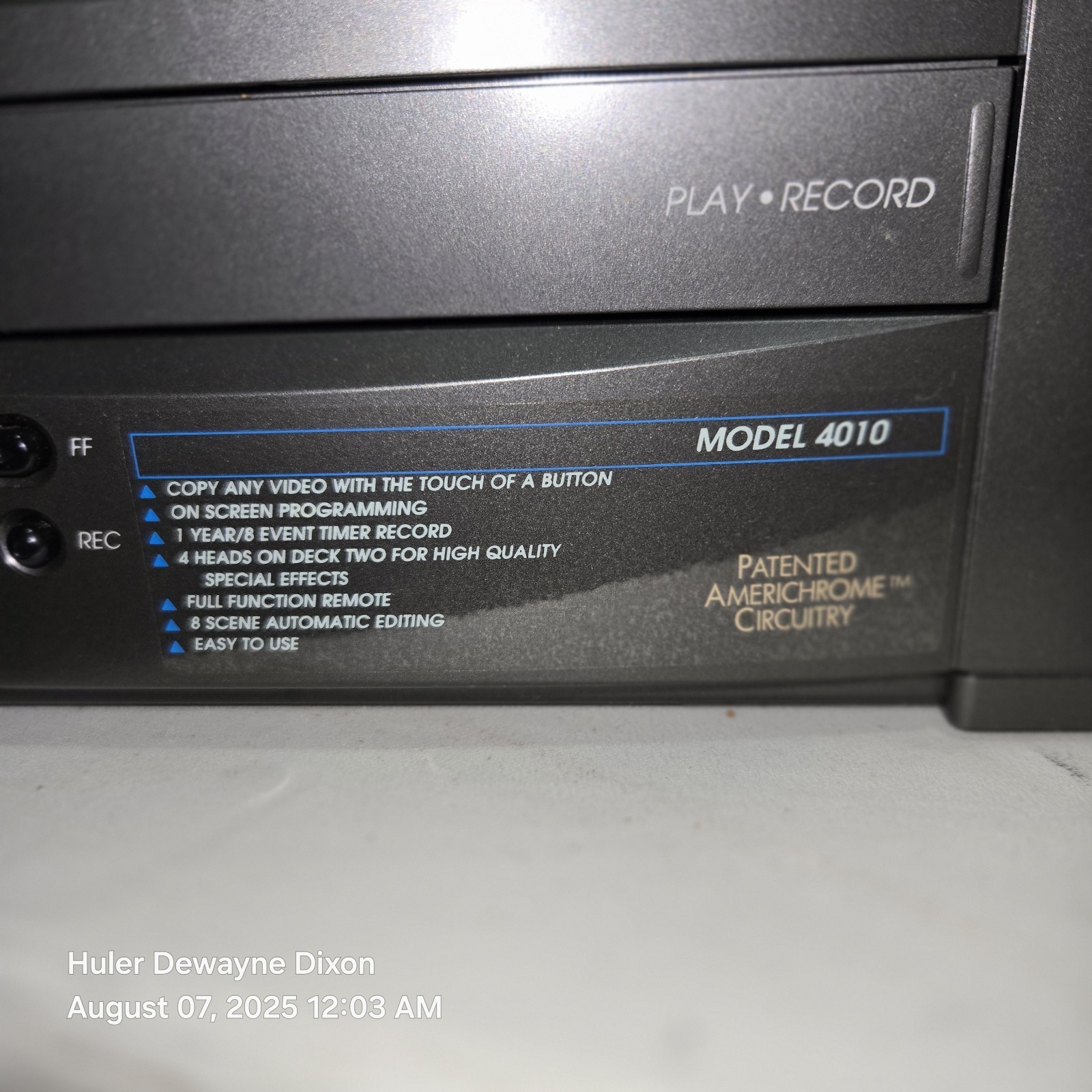 The Go Video Dual Deck System VHS VCR Tape Recorder GV4010 is a vintage video cassette player that plays VHS tapes. With 4 heads this model offers high-quality playback and recording capabilities. .new opened box to show it works check video box little worn from years of storage come with remote check pics