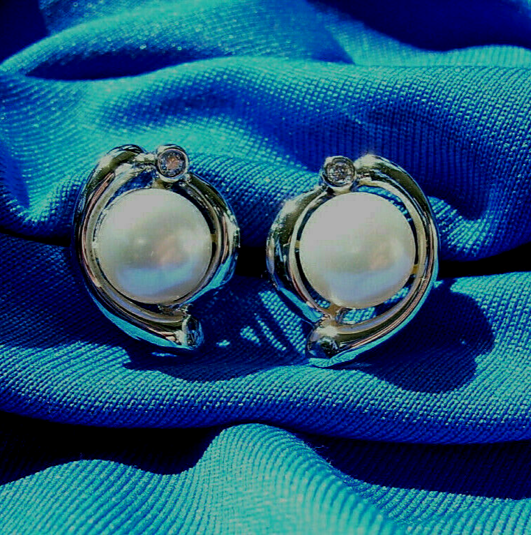DESIGNER PEARL DIAMOND 14K WHITE GOLD STATEMENT EARRINGS.