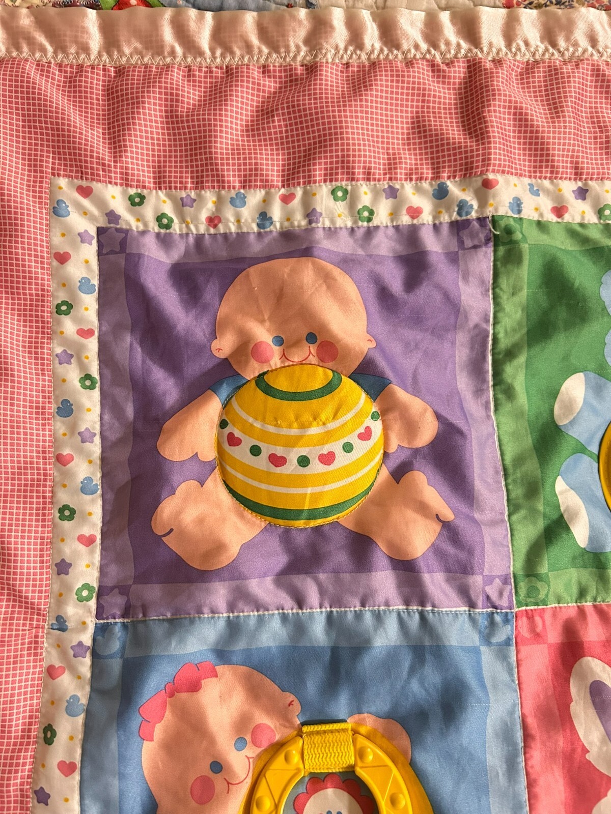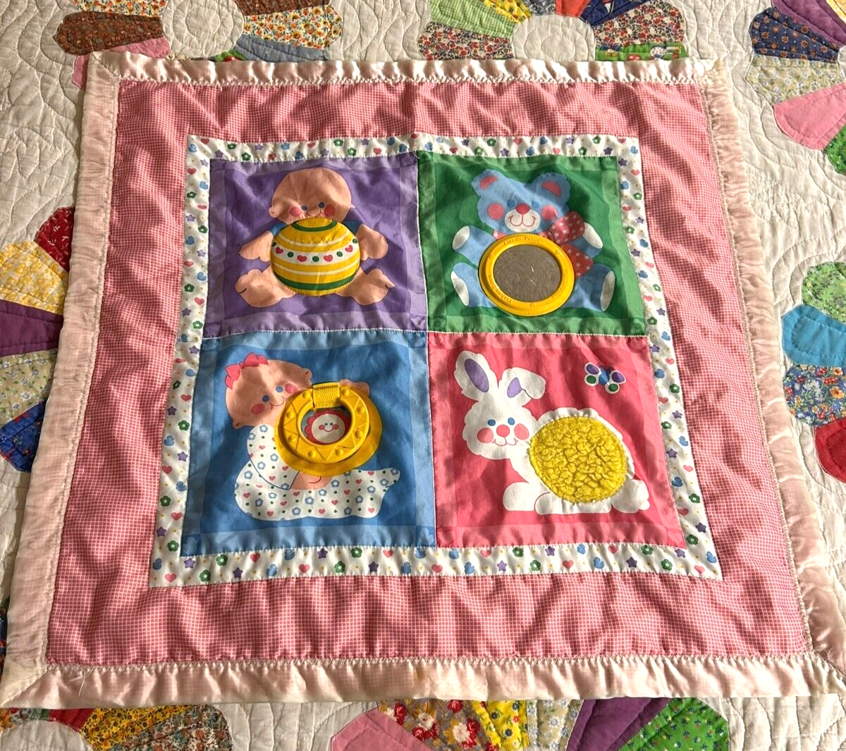 Fisher Price Vtg 1983 Baby Blanket Tummy Time Activity Mat Pink Mirror Teether