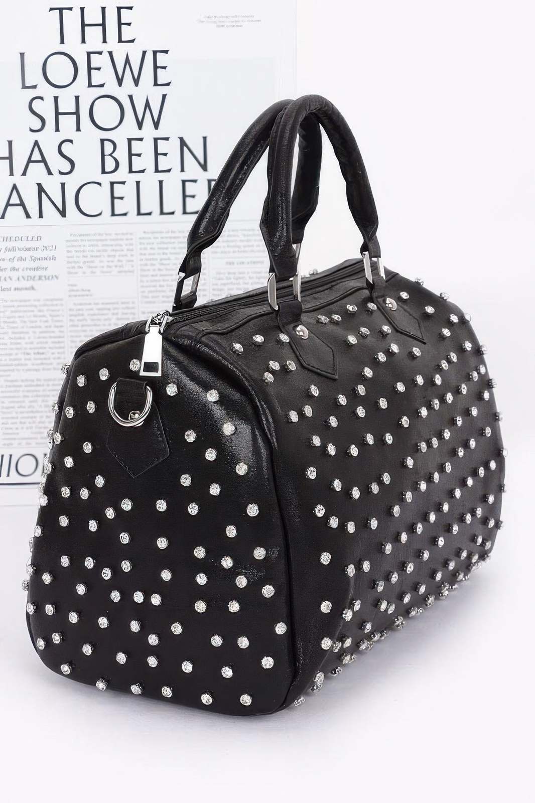 Comfortable All-Day Wear: The Rhinestone Studded Bowling Bag is designed for all-day wear with its sturdy handles and lightweight design, offering both comfort and style.