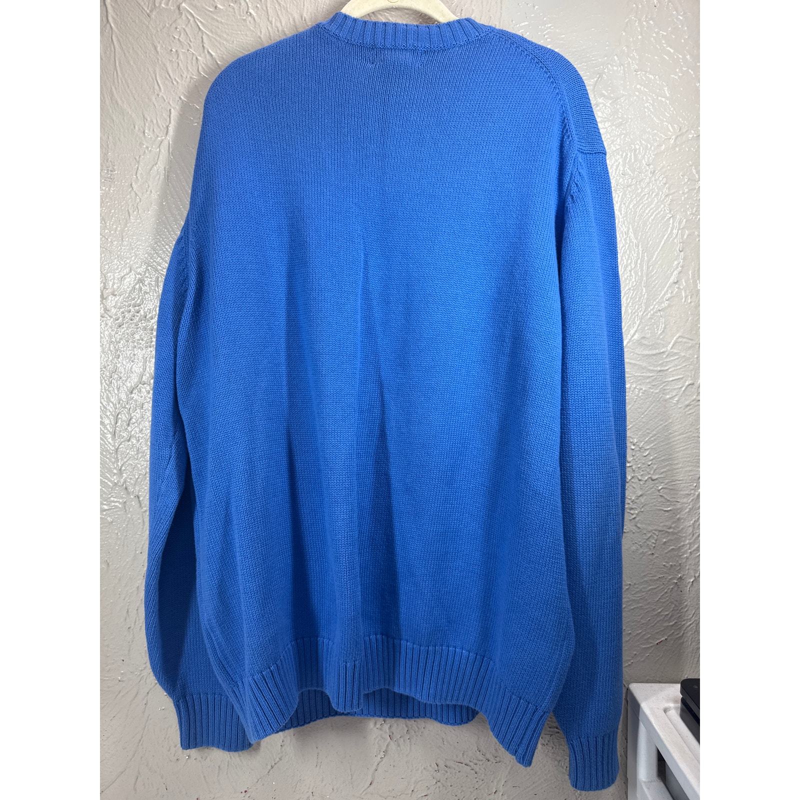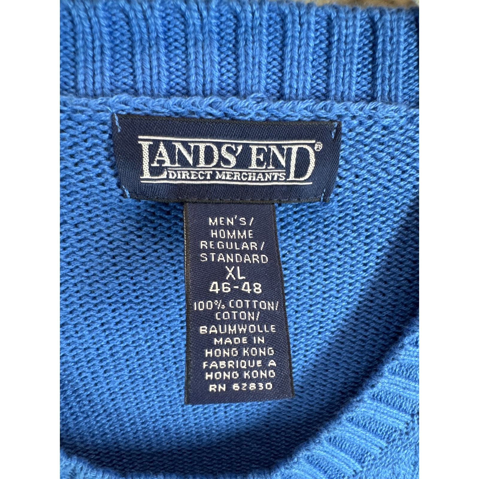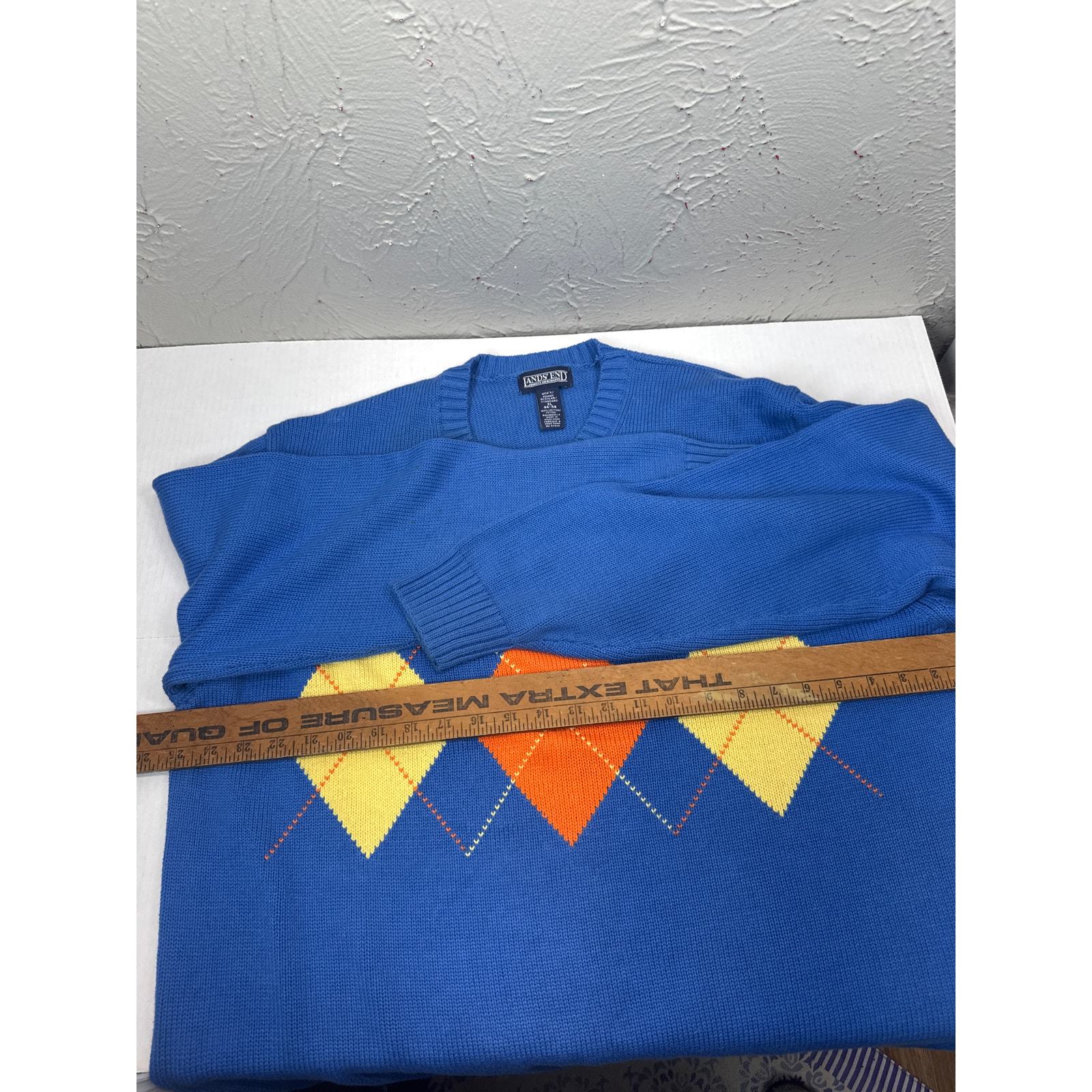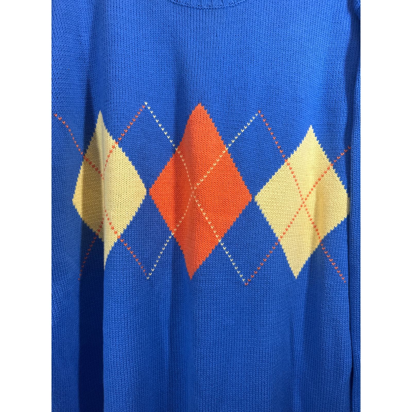 Vintage Lands End Mens Argyle Sweater Orange Blue Yellow Round Neck Size XL