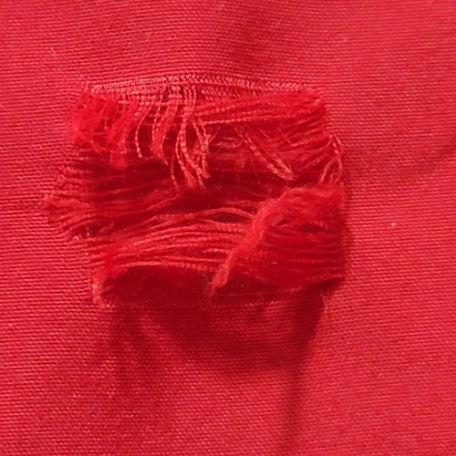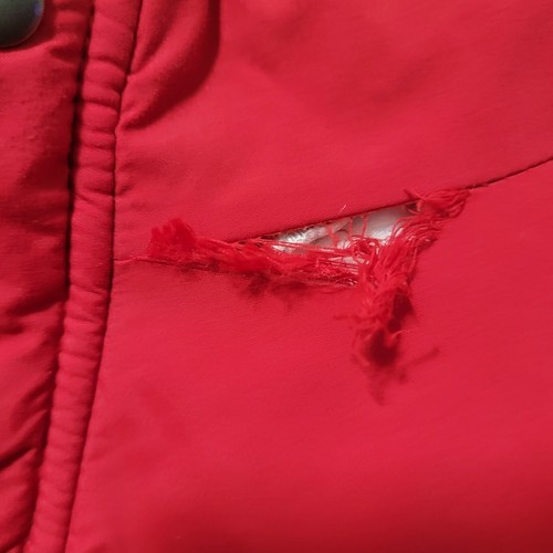***Does have a few Rips to mention. 1st one is on the back. 2nd one is on the left side at the neck seam. 3rd is at the bottom left side waist seam (where the elastic waist cuff starts). Also has some black marks by the right zipper pocket. Please See Photos!***