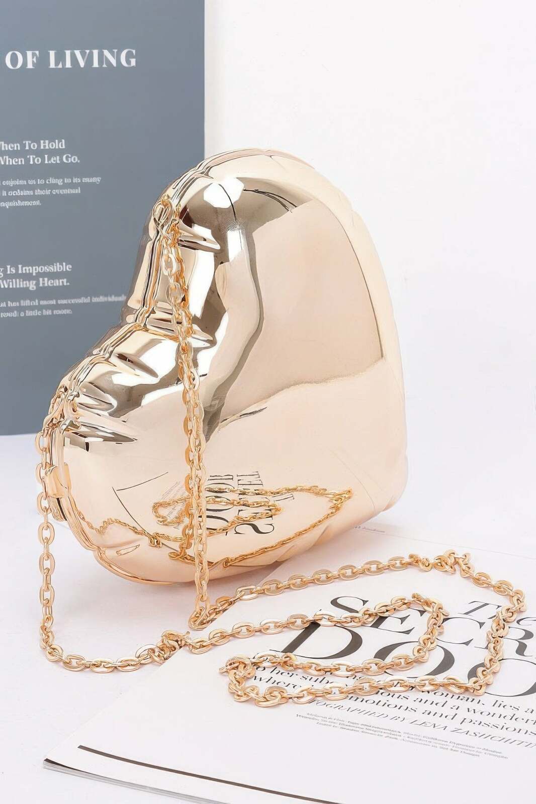 Love this heart-shaped design! It's the perfect size for my essentials, and I feel so chic carrying it. Emily R.