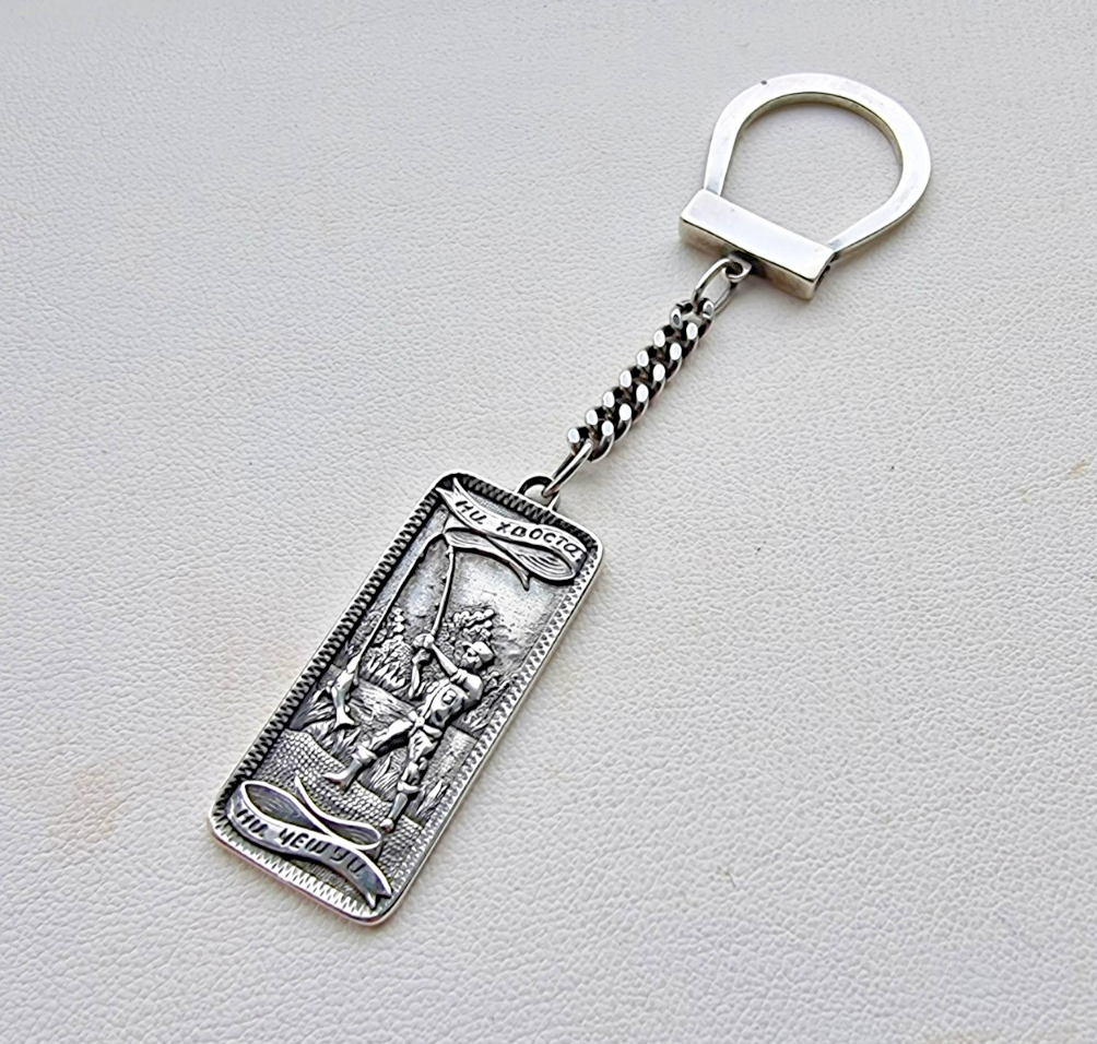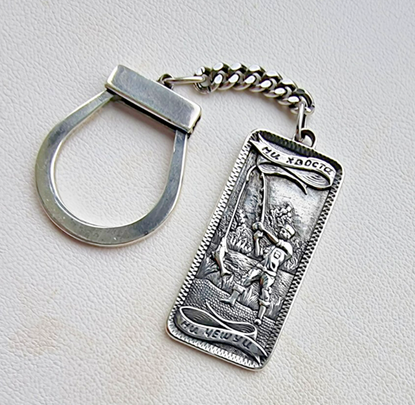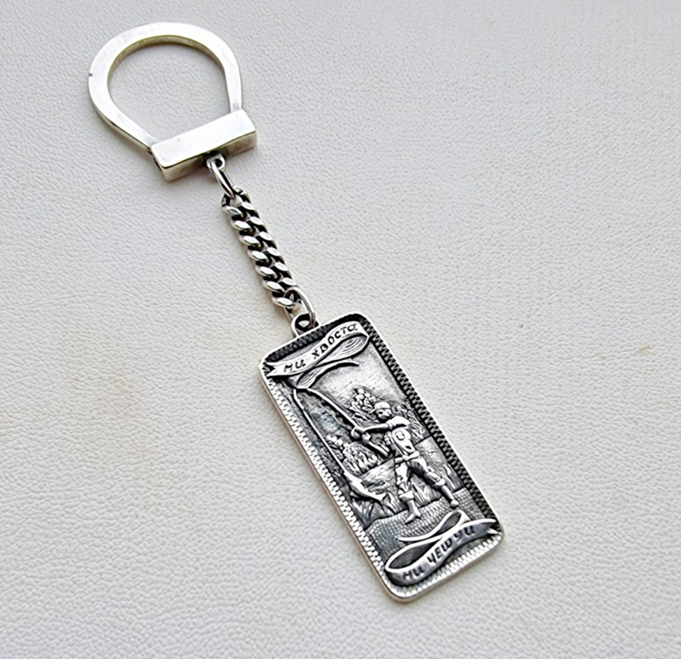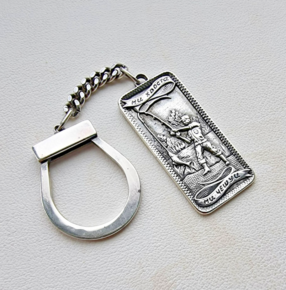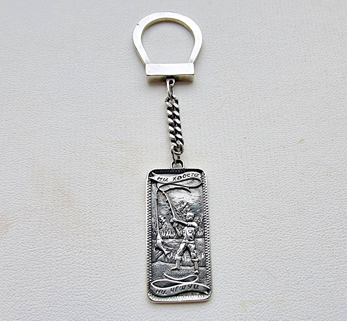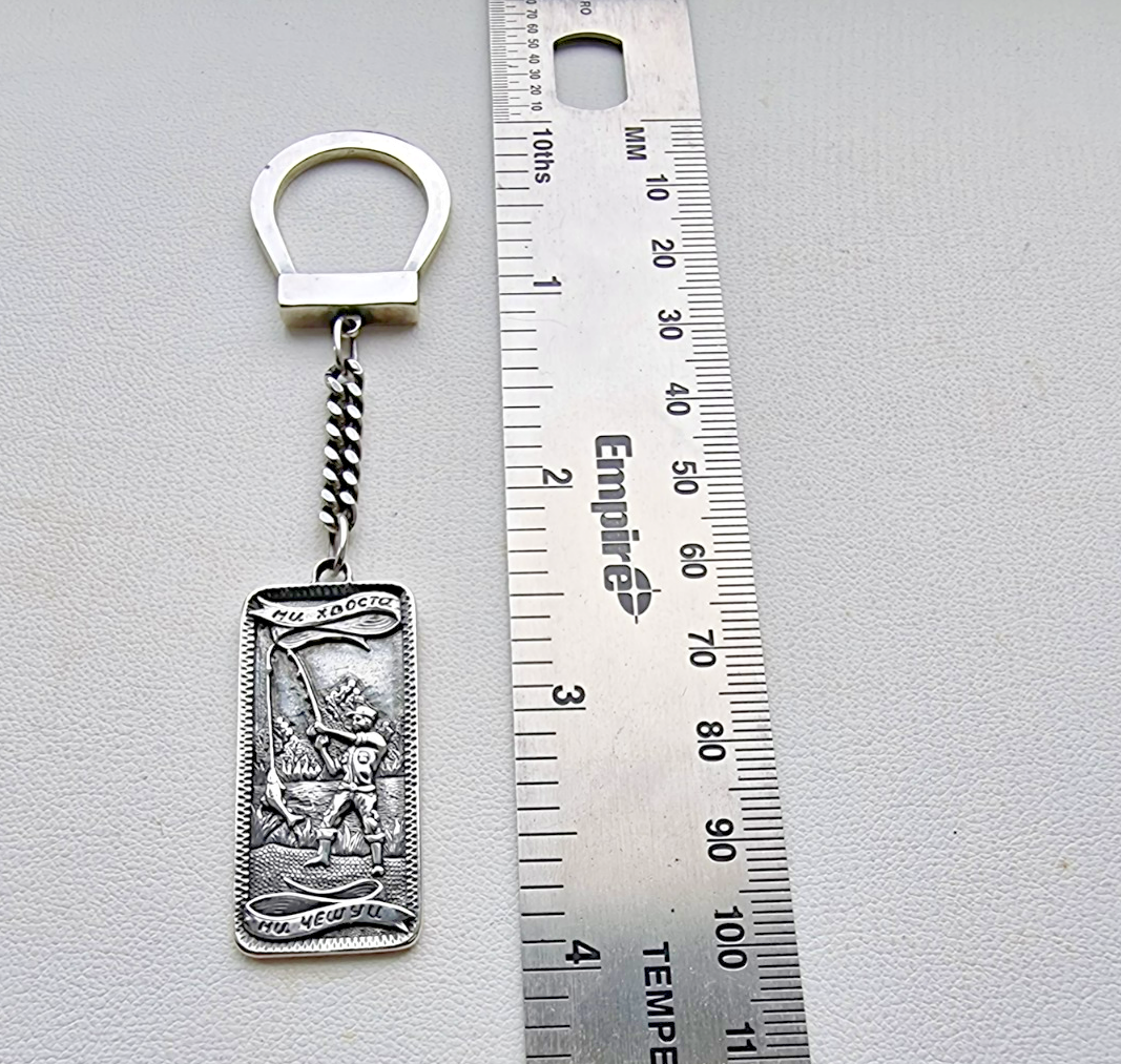 VINTAGE 925 STERLING SILVER FISHERMAN ''Ни хвоста Ни чешуи'' KEYCHAIN