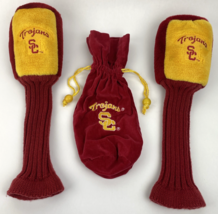 2 x Vintage 80s USC Trojans Golf Club Driver Head Cover w Bag Cardinal & Gold