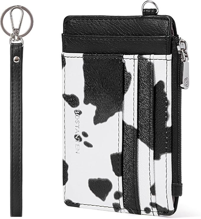 Minimalist Black and White Cowhide Leather Wallet RFID by BOSTANTEN Boho