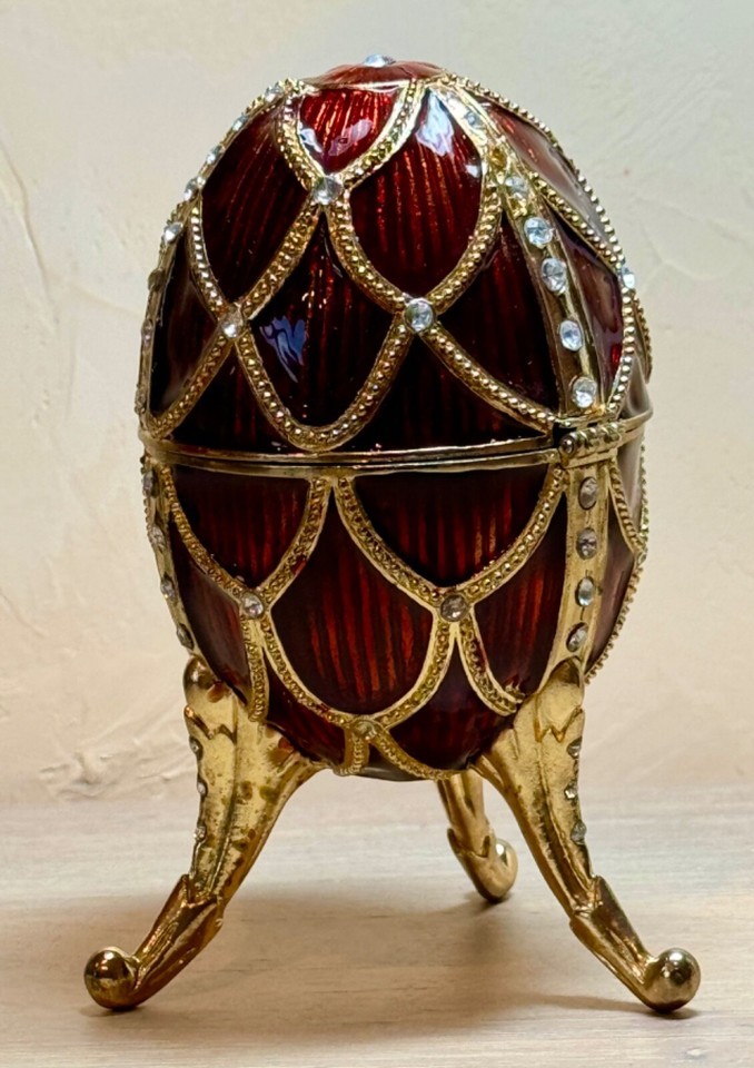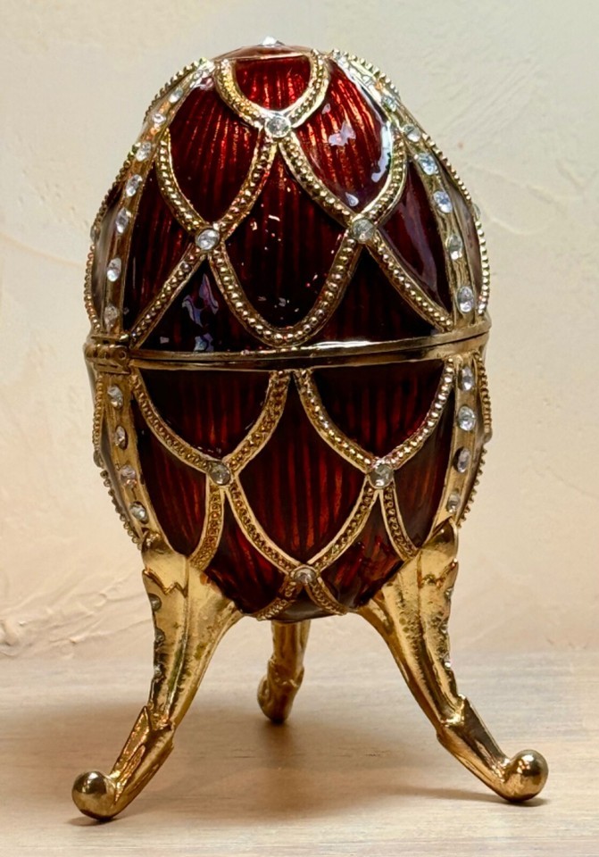 Faux Faberge Enameled Golden Trellis: Rouge Romanov Style Collectible Egg Pewter
