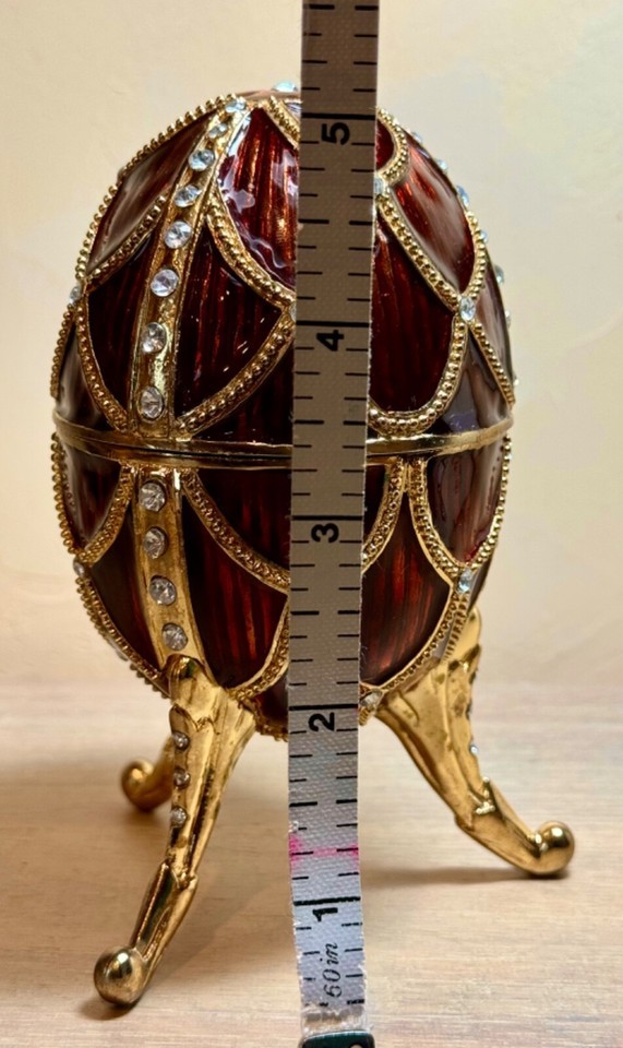 Our Rouge Romanov-Style Collectible Enameled Egg measures 5? tall.