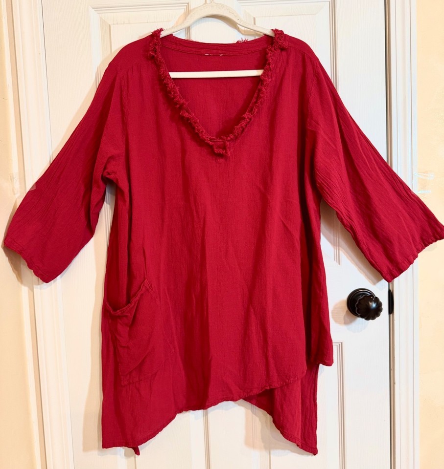 Cottonways Frayed V Neck Trim Asymmetric Hem and 43 similar items