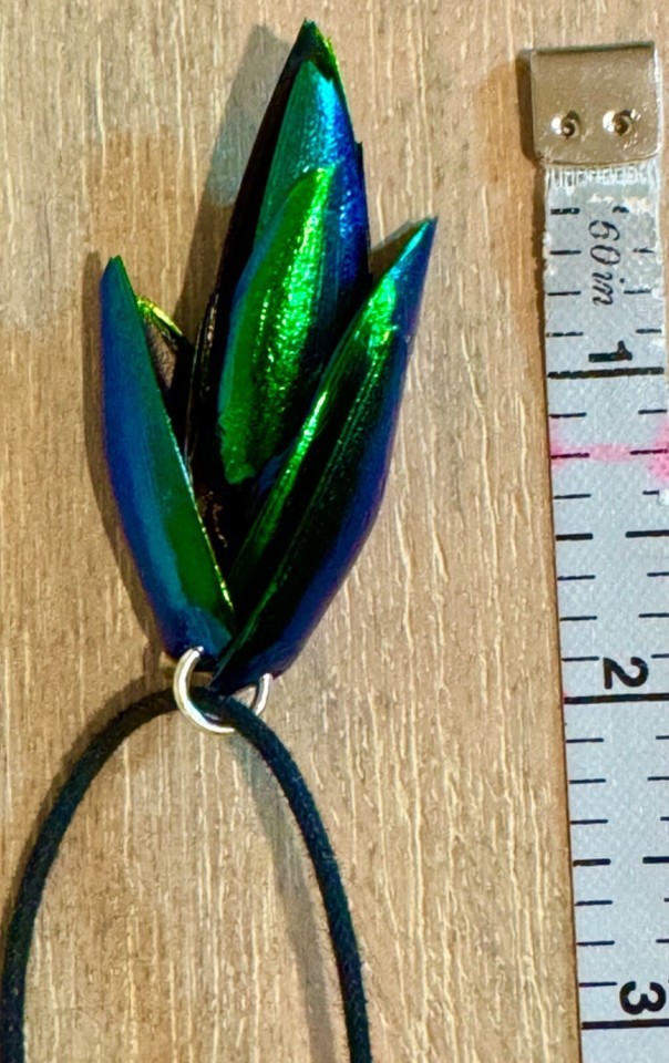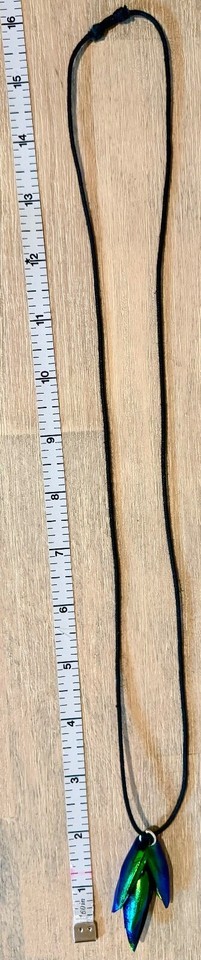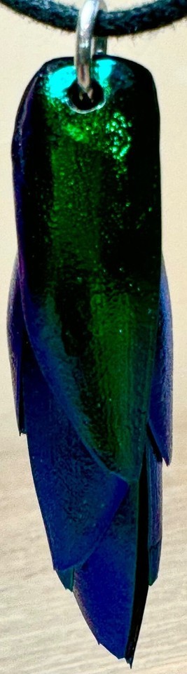 Green/Blue Iridescent Real Elytra Jewel Beetle Wing Hand Made Necklace