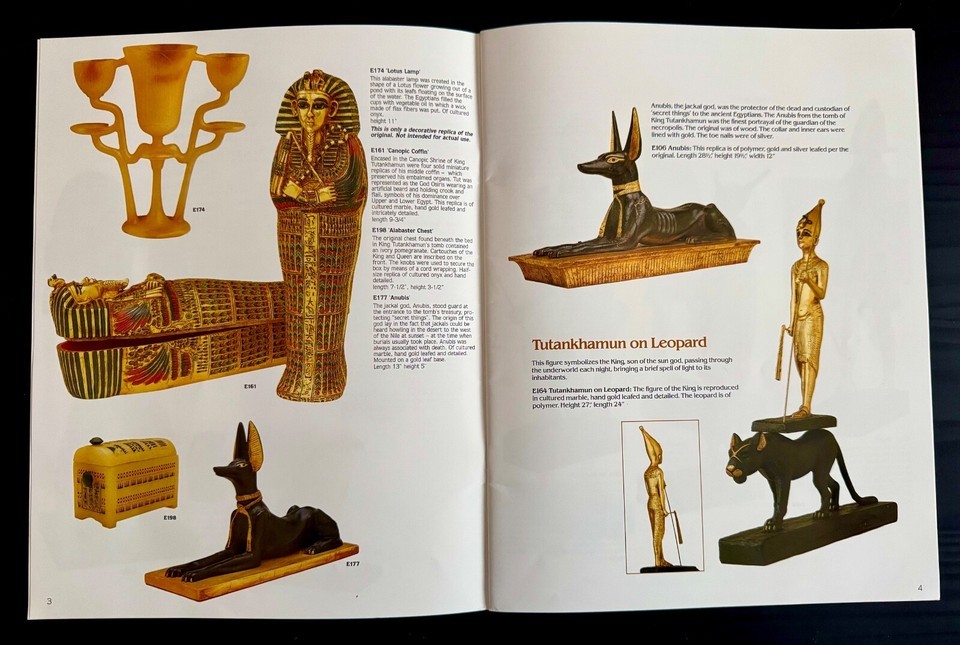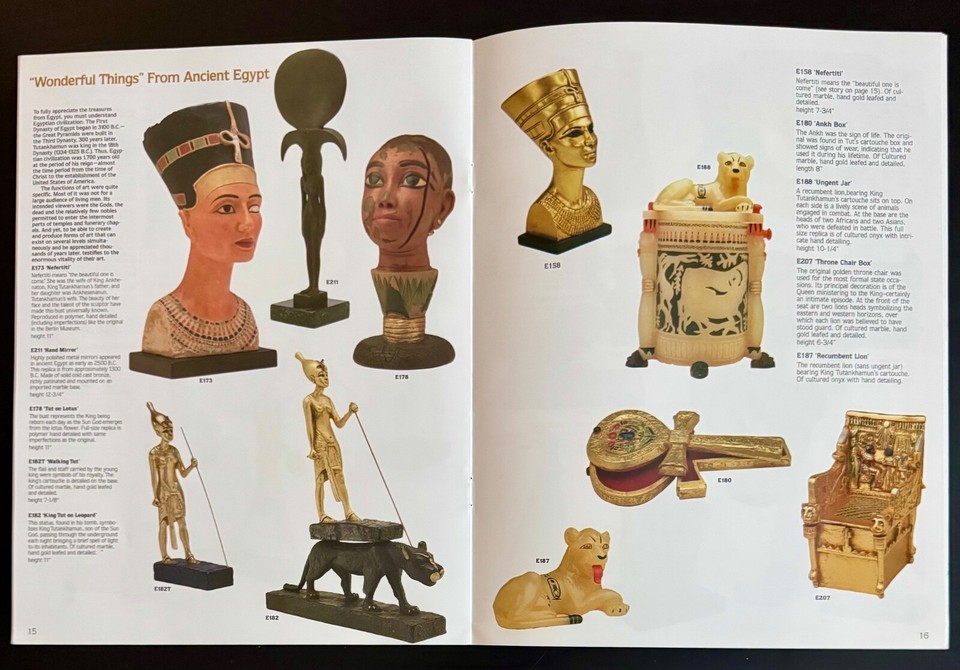 In addition to the Artisans Guild International AGI Catalog, you will receive the Artisans Guild Treasures of History catalog 2 pages consisting of more Egyptian Art Treasures on CD.