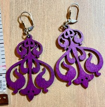 Boho Purple Wooden Dangle Earrings Pierced and 49 similar items