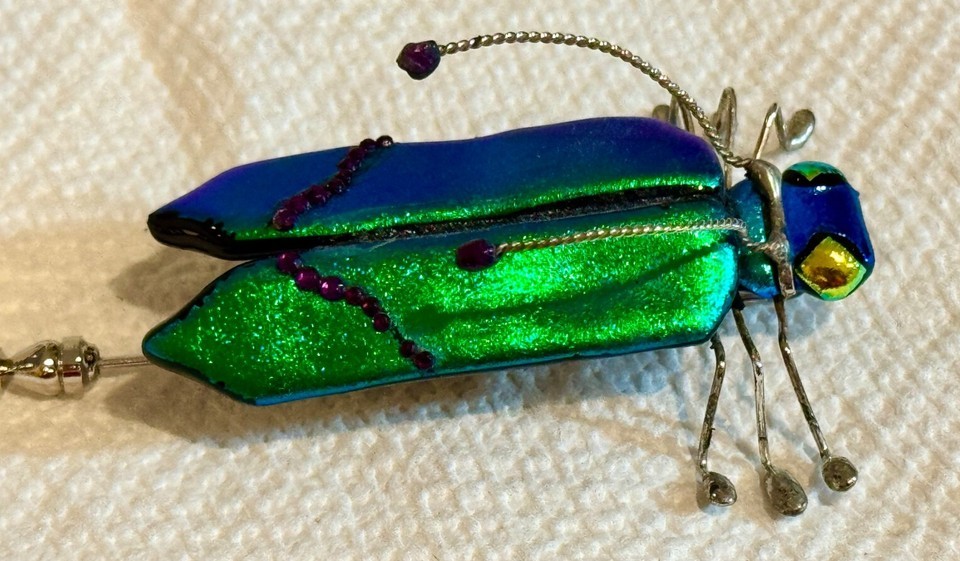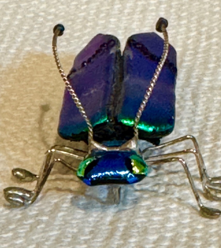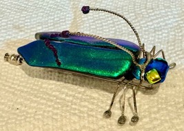 Exceptional Silver Artisan Dichroic Glass Blue Green Beautiful Bug 3”