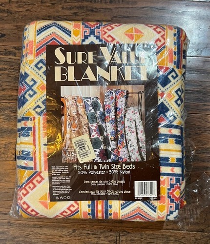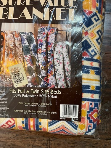 Vtg Sure-Value Aztec Southwestern Blanket Full/Twin 50% Poly 50% Nylon Open Bag