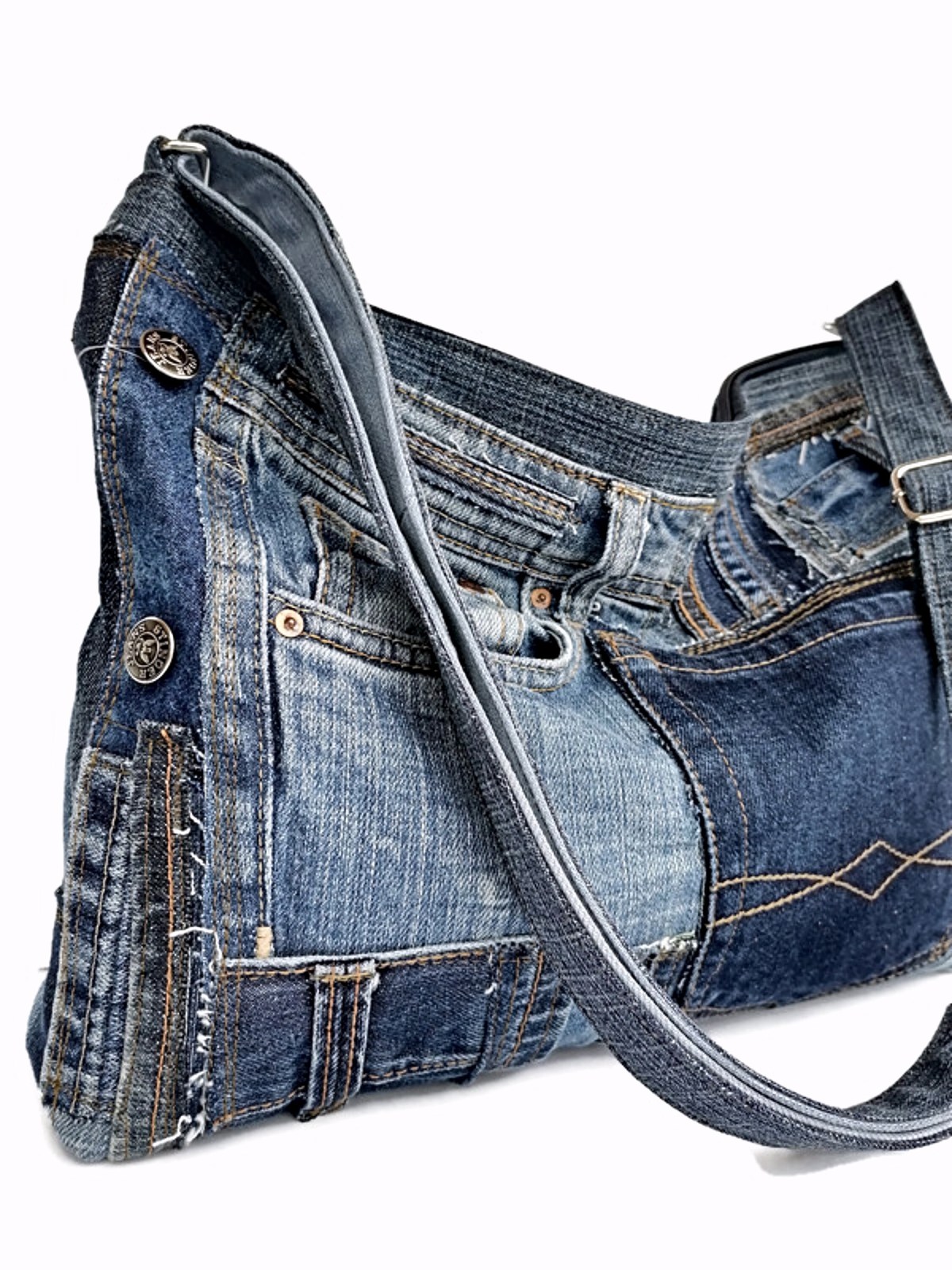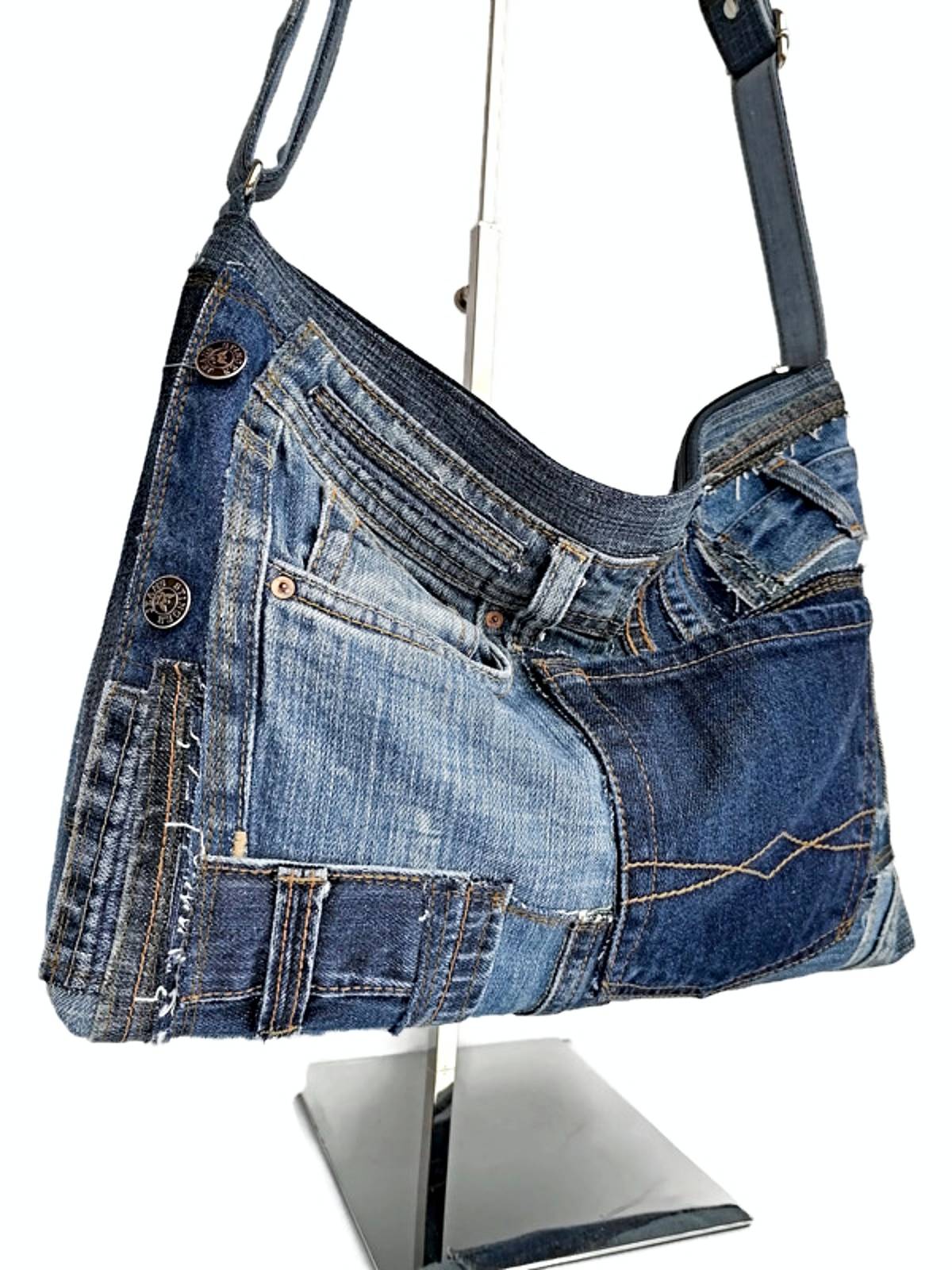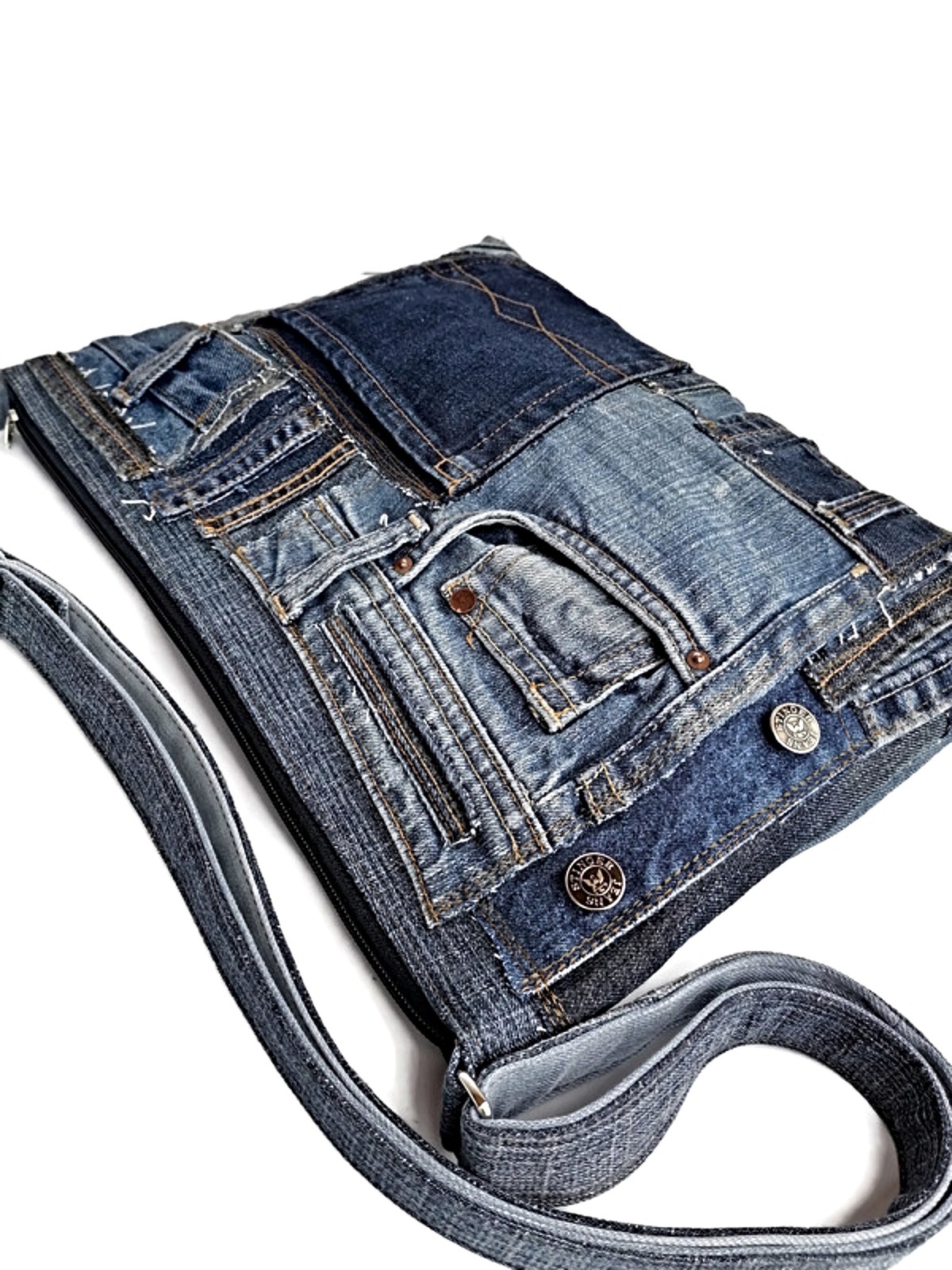 Upcycled Denim Crossbody Bag: Jeans Purse with Zipper Pocket