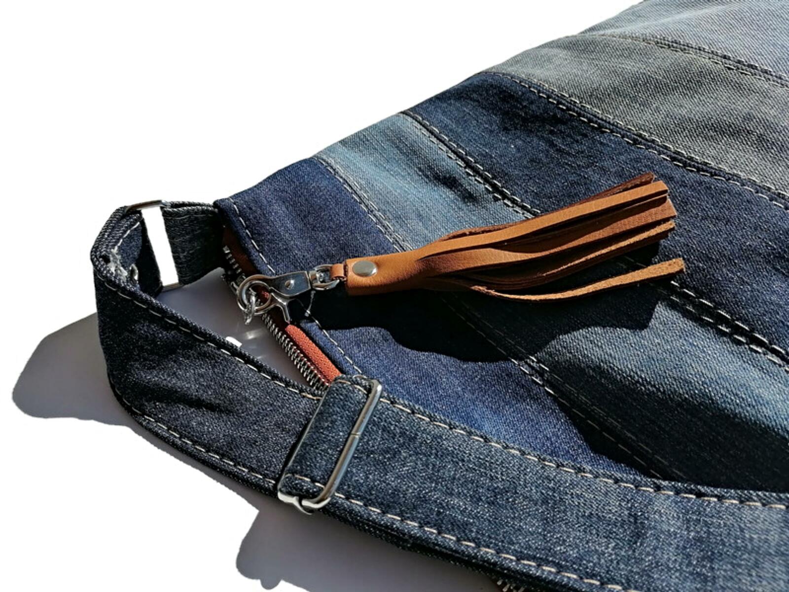 Upcycled Patchwork Denim Crossbody Bag: Handmade Jeans Purse
