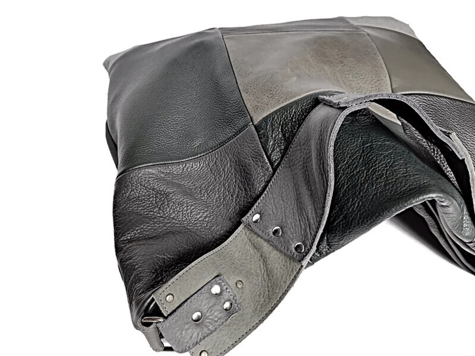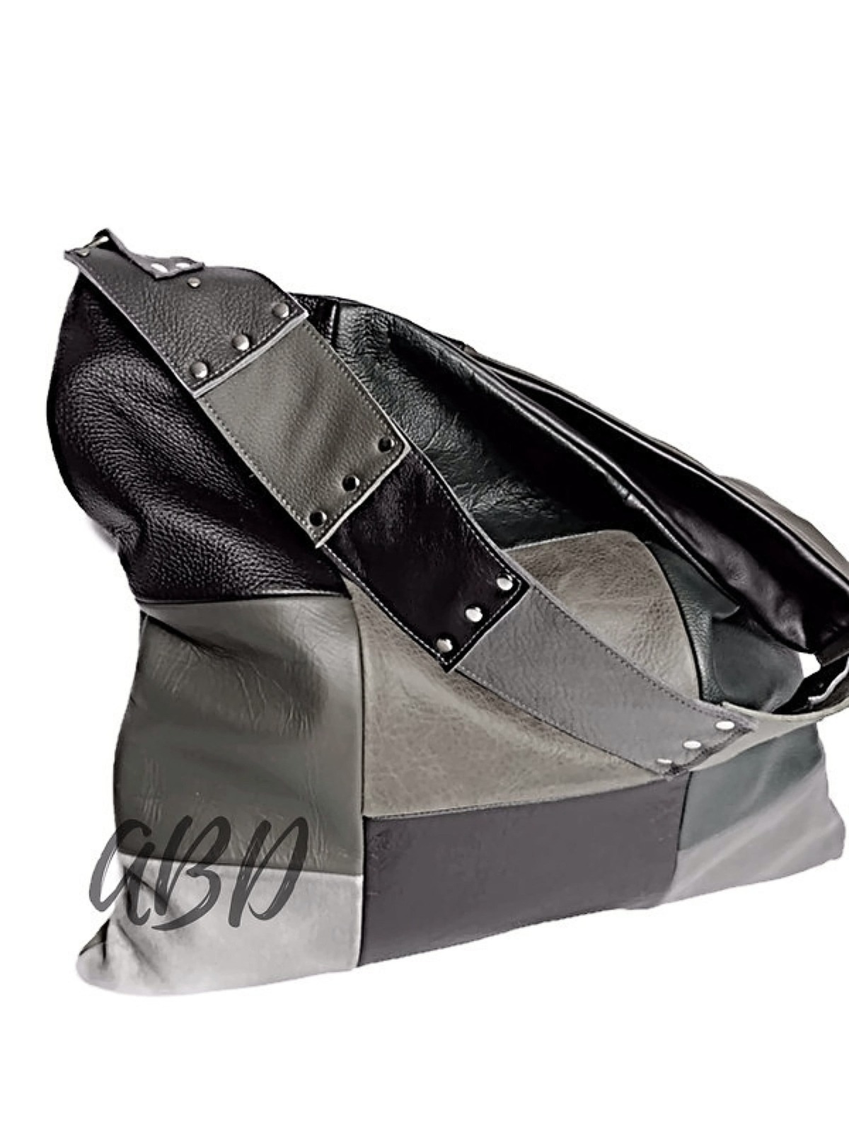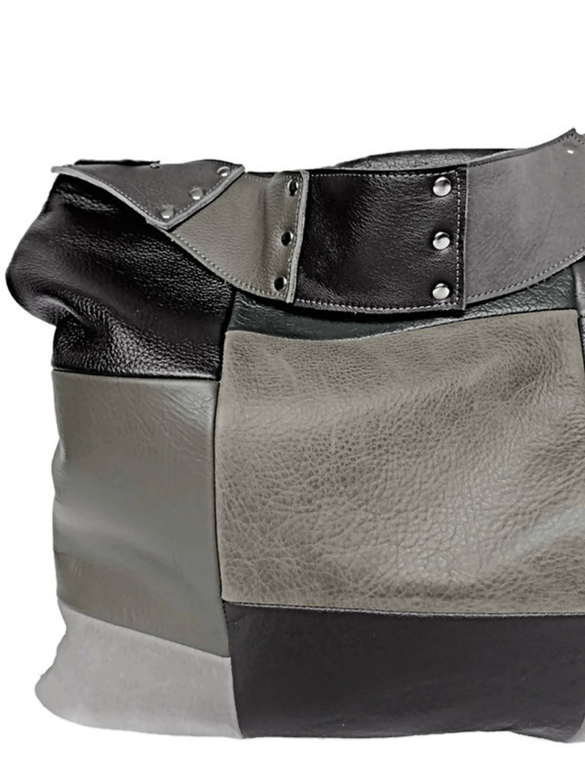 Handmade Black & Grey Leather Hobo Bag: Soft and similar items
