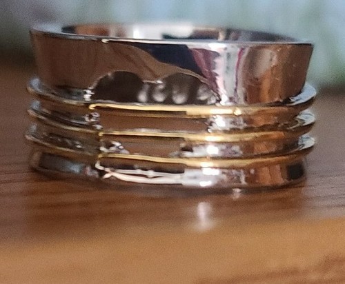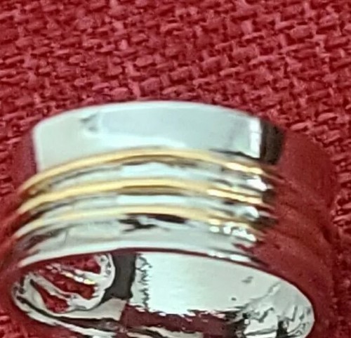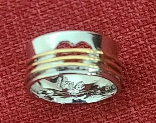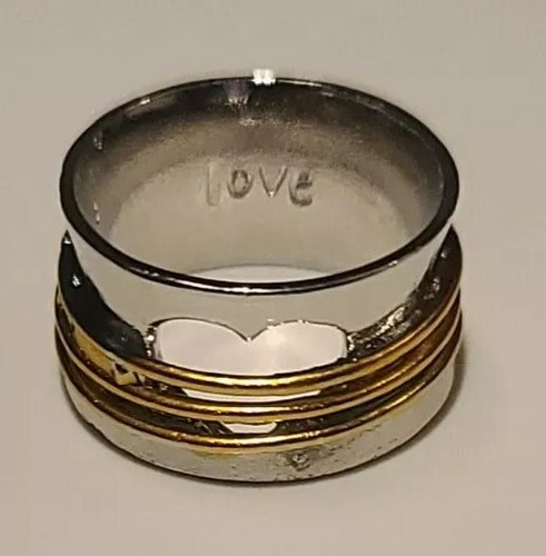 Handcrafted ~ Heart/Love ~ Wide Band Ring ~ Size 11 ~ Silver & Gold in Color