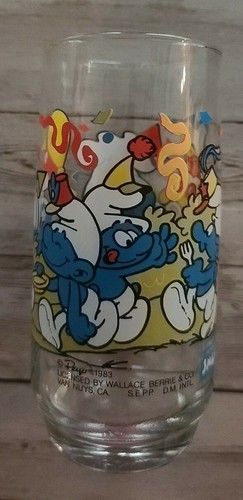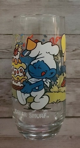Vintage ~ Peyo ~ One (1) Baker "SMURF" ~ 1983 ~ Clear Beverage Drinking Glass