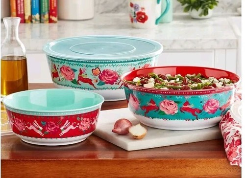This Sale is for One (1) Pioneer Woman Melamine Bowl Set with Lids