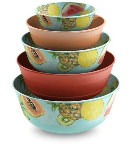 Member's Mark ~ Ten (10) Piece Melamine ~ Nesting Bowl Set ~ SUMMER FRUIT TOSS