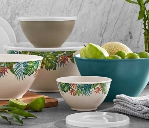 Member's Mark ~ 10 Piece Melamine Nesting Bowl Set ~ Satin Finish ~ Palm Island