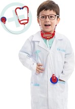 Unisex Kids Child Medical White Dr. Lab Coat Costume, includes Doctor Coat w/ Spacious One Chest Pocket, Two Lower Pockets and Real Buttons and One Stethoscope Toy