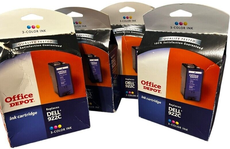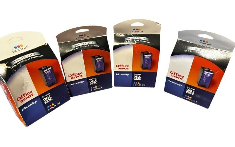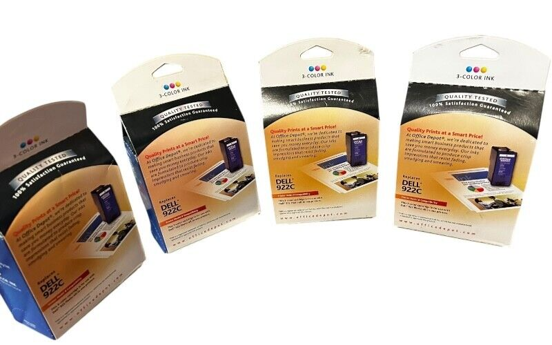 Old new stock - 4 packs - OfficeDepot Brand For Dell 922C 3 Color Ink Cartridge. New-Sealed. No expiration dates shown on boxes.