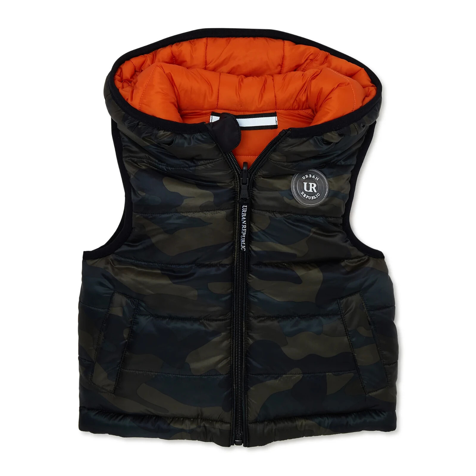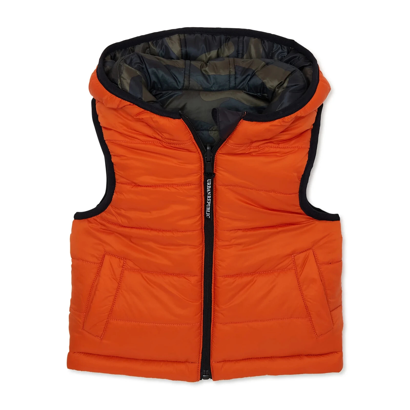 urban republic kids olive camo reversible hooded puffer sleeveless jacket vest size 3T
