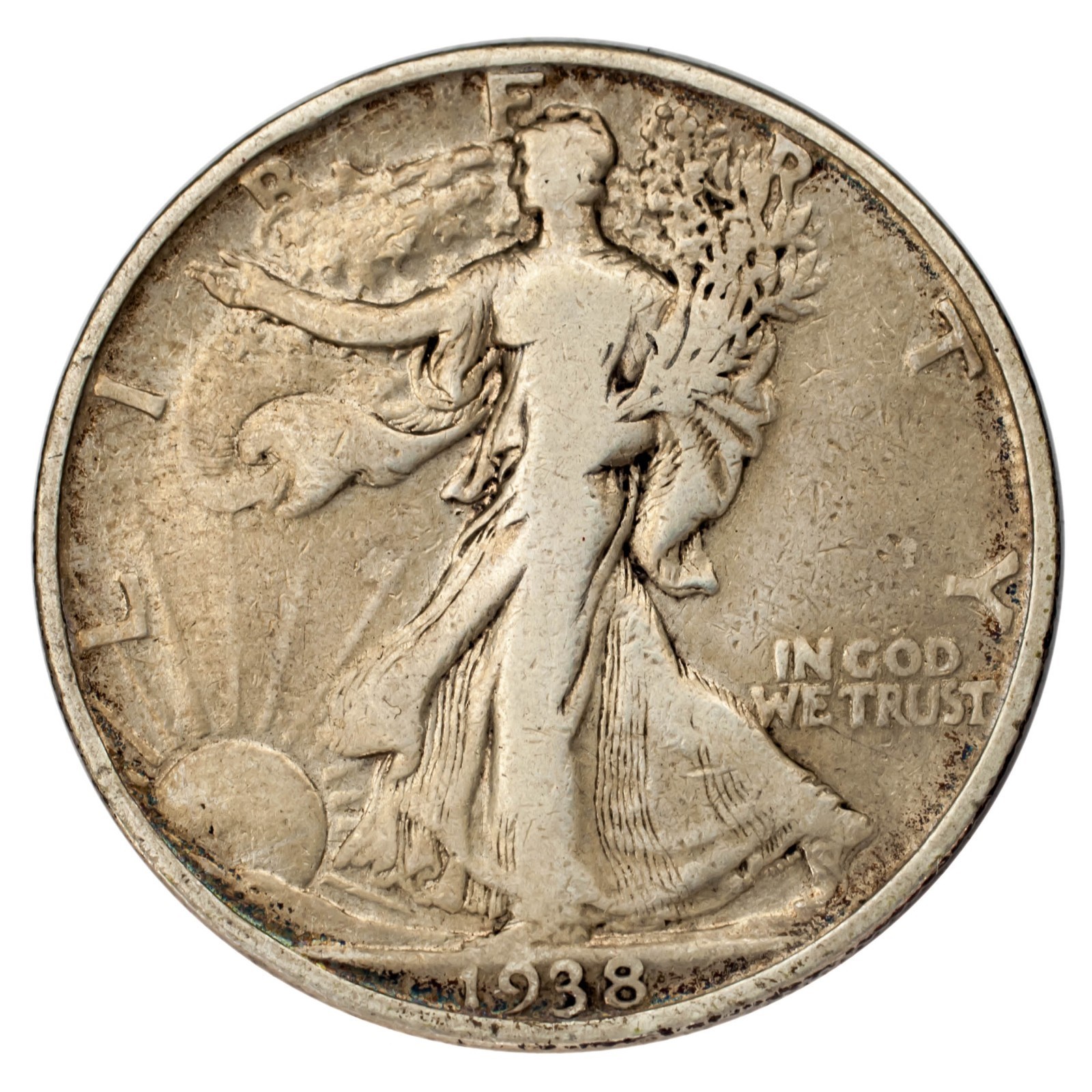 1938-D Silver Walking Liberty Half Dollar 50c (Fine, F Condition)