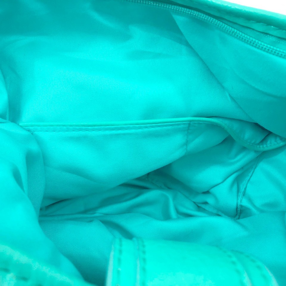Inside 1 zipper pocket & 2 slip pockets, turquoise fabric inside |