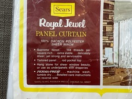 Beautiful vintage Sears Royal Jewel Panel Curtain, new in original packaging. Made of 100% Dacron polyester sheer ninon, this mid-century curtain features a tailored rod pocket top and Perma-Prest fabric for easy care and wrinkle resistance.