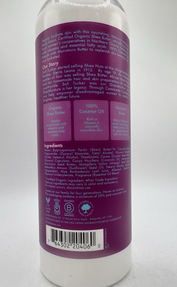 Shea Moisture Coconut Oil Organic Shea Butter Hydration Lotion16 Oz - 2Bottles.