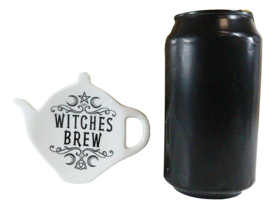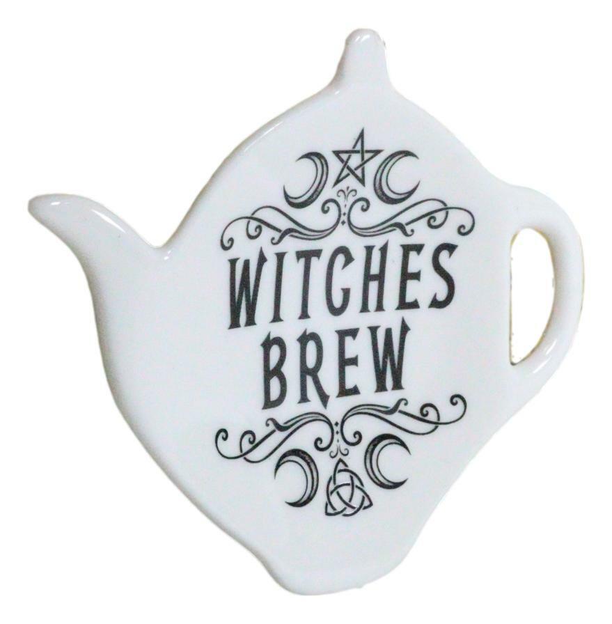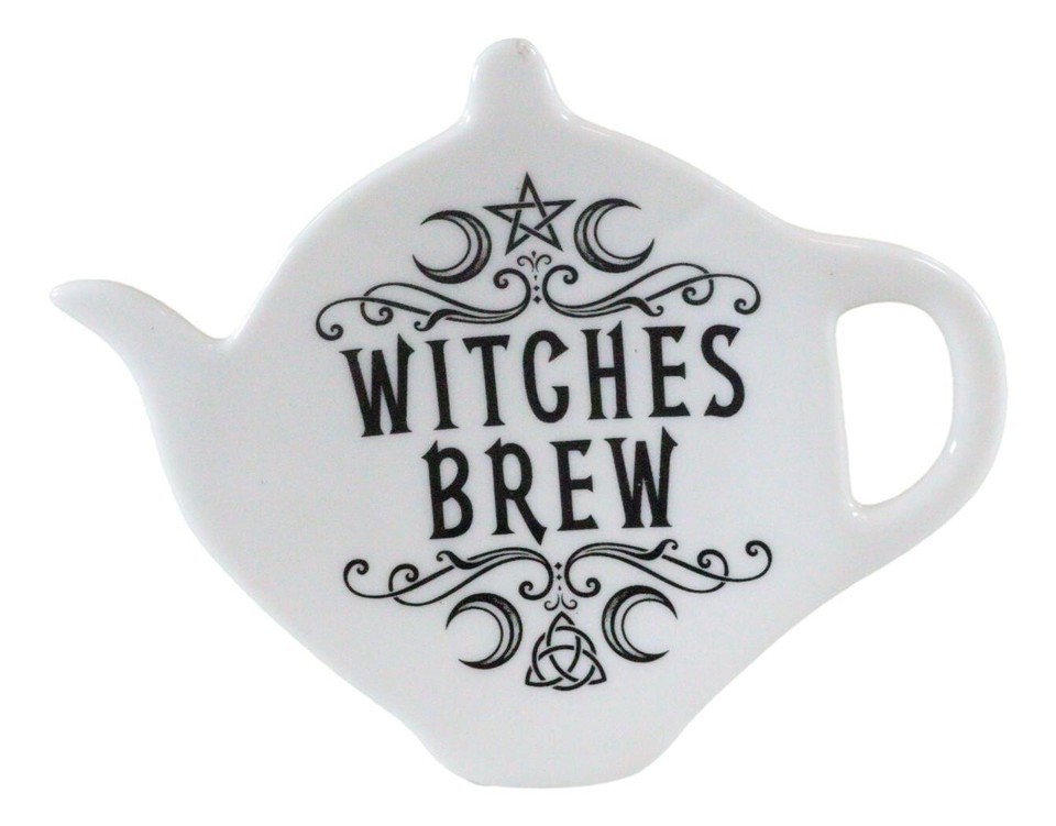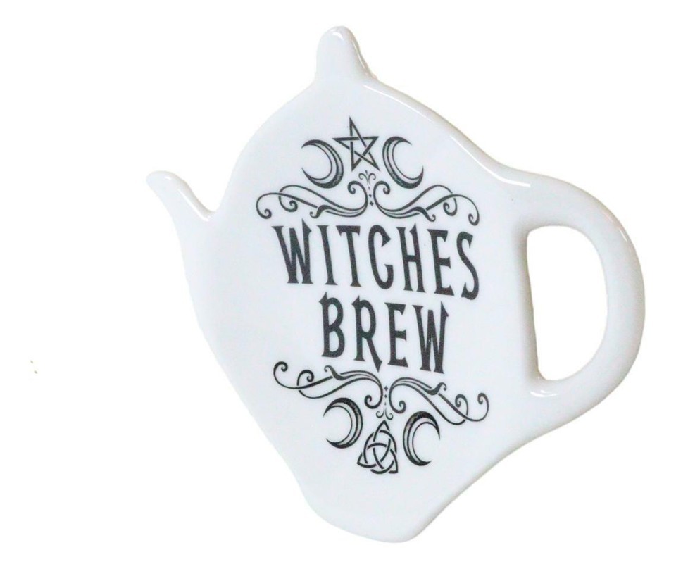 Ebros Pack Of 2 Wicca Moons Witches Brew Hex Ceramic Tea Spoon/Bag Holder Plate