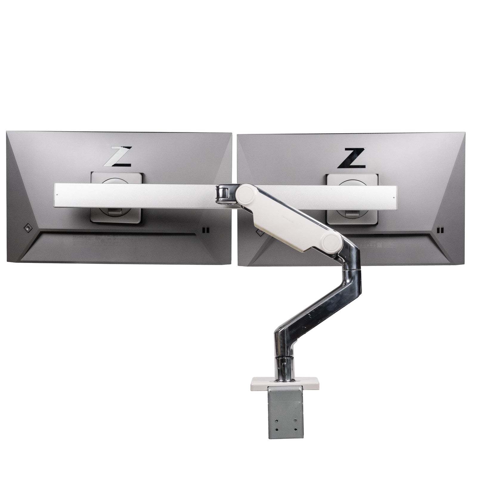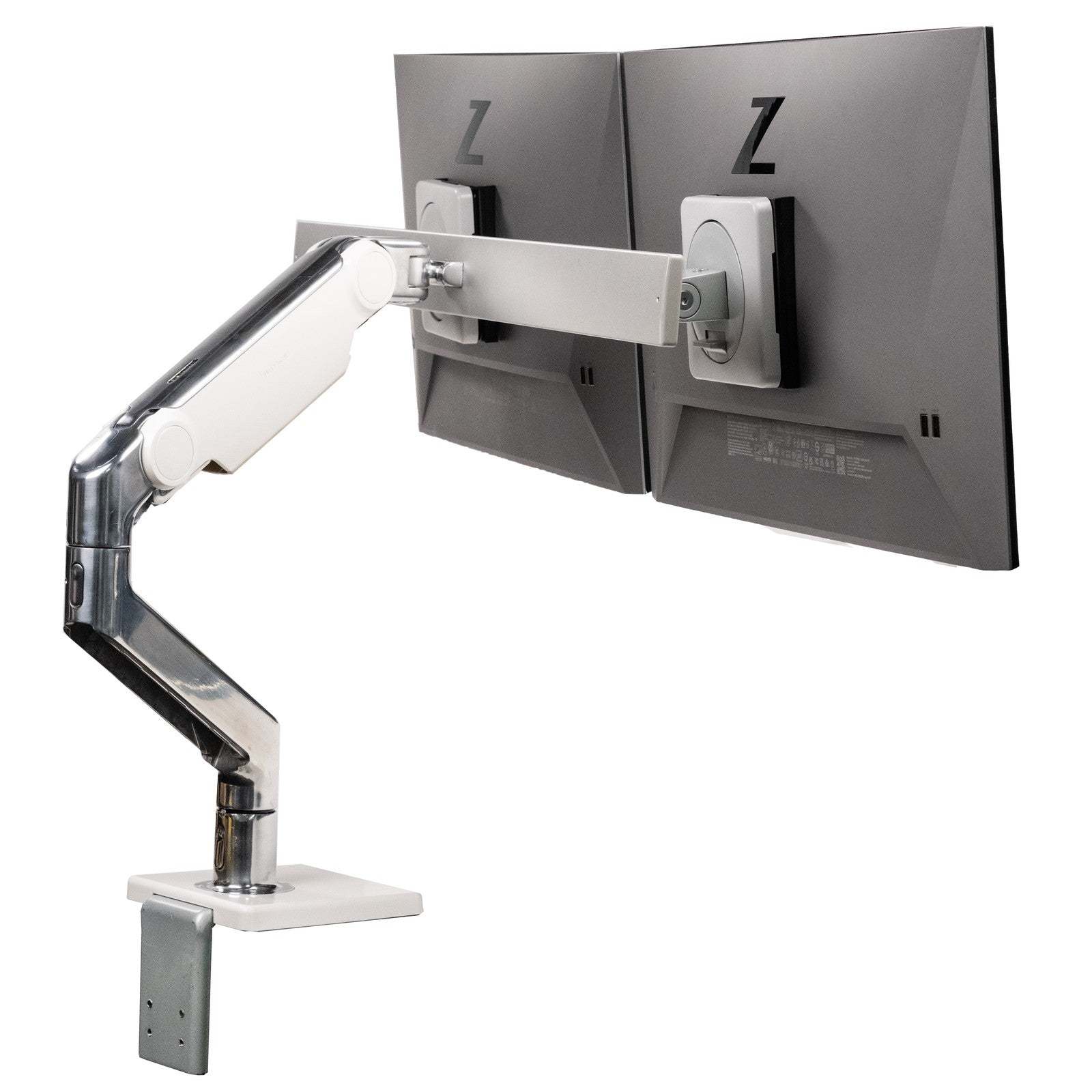 Dual HP Z24f G3 24" IPS Monitor & Adjustable Sping Swivel Humanscale Clamp Stand