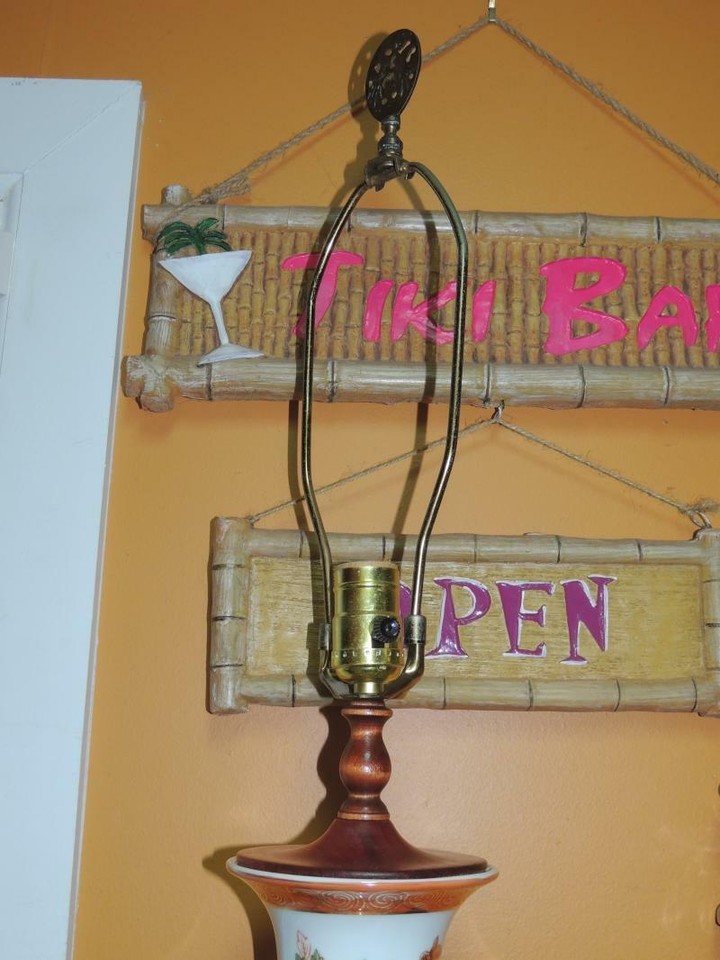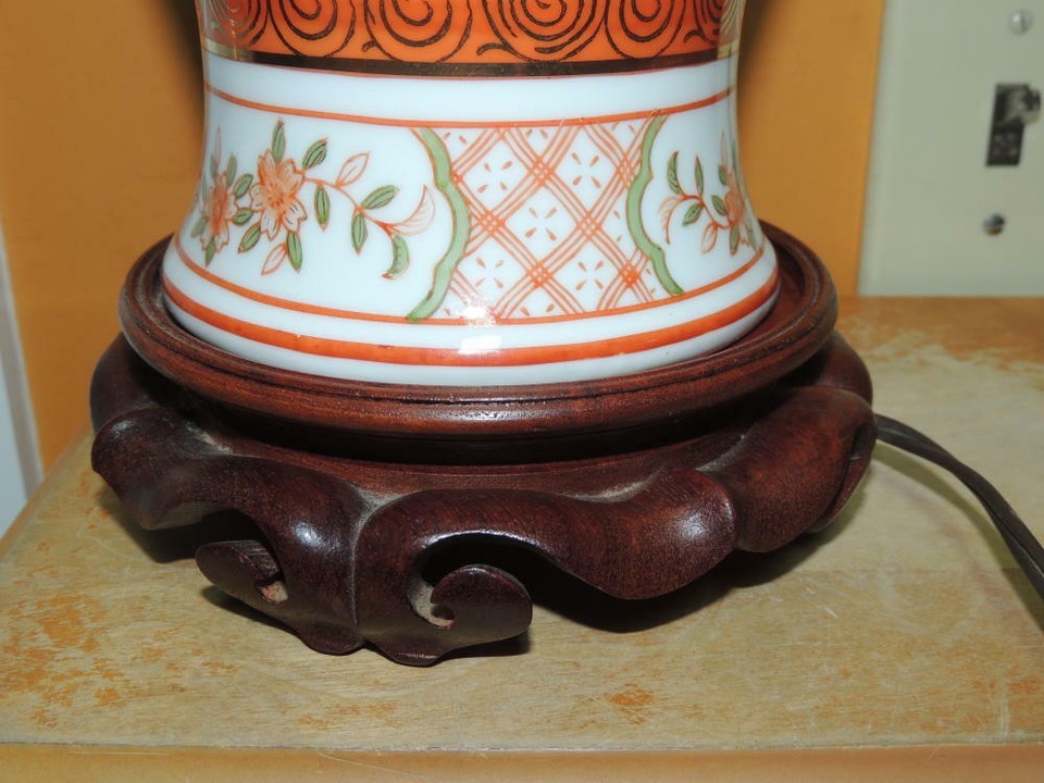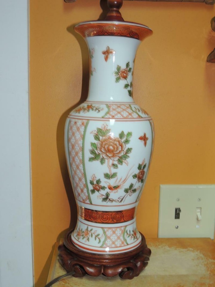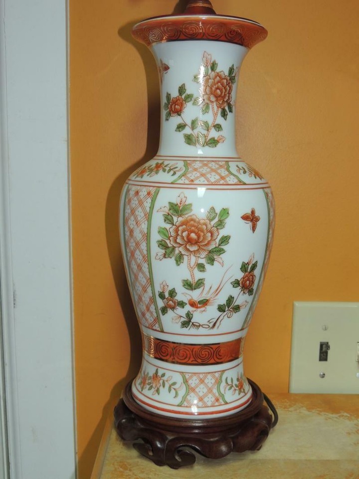 Japanese 33" Lamp flowers birds butterflies Rose Medallion style Vase Vintage