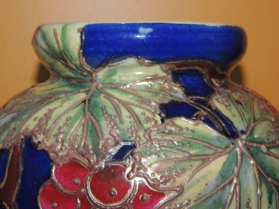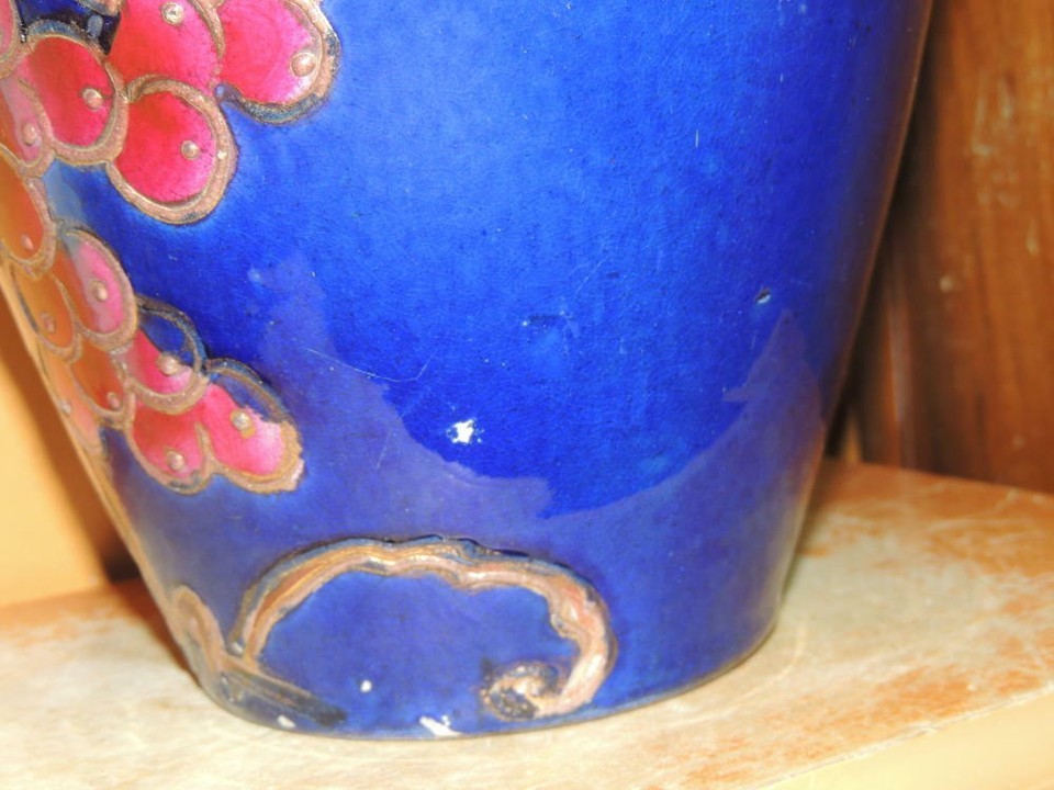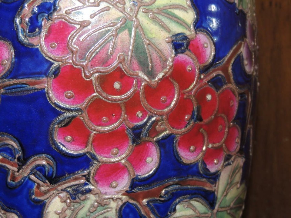 Large Cobalt Vase 15.5" Blue grapevine gold moriage poss Satsuma Antique Vintage
