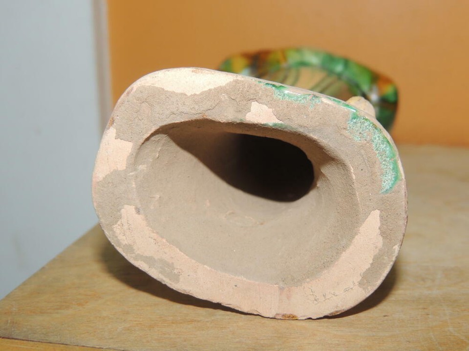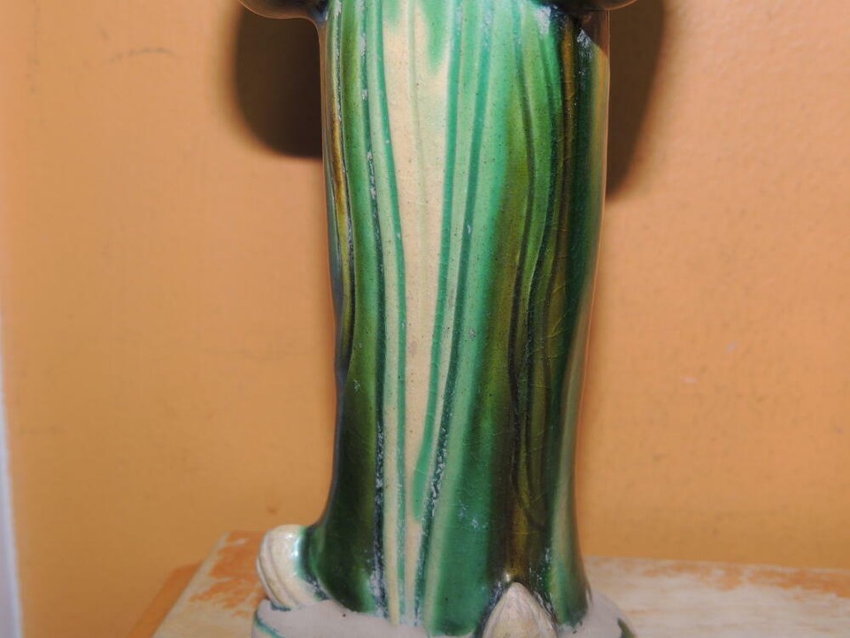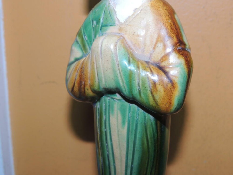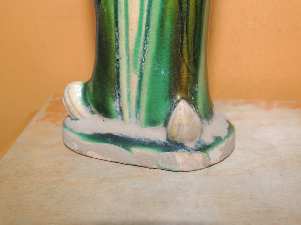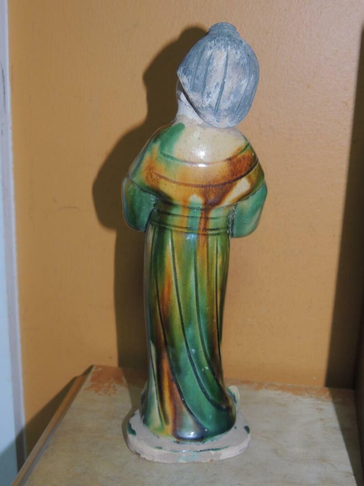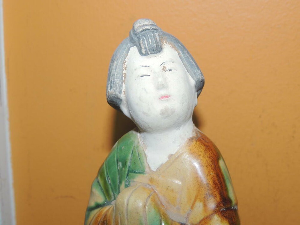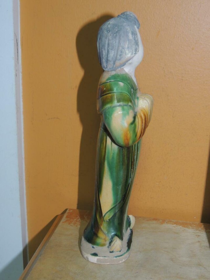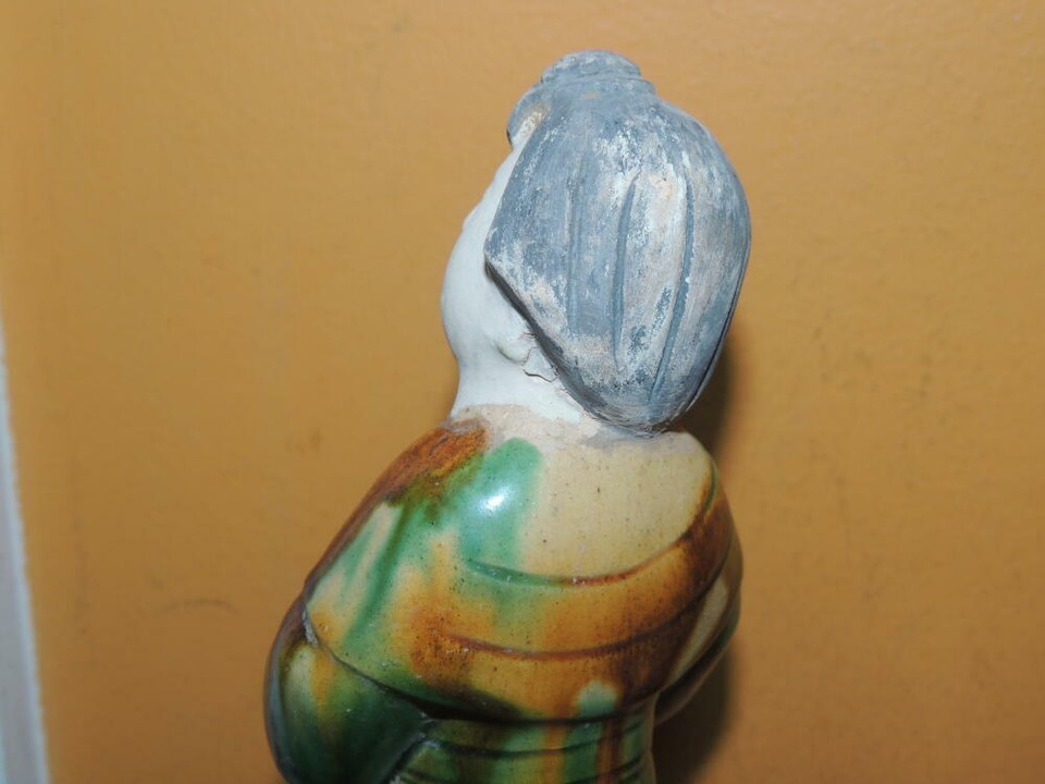 Chinese Terracotta Mud Woman Standing 7.5" Sancai drip glaze yellow green mudman