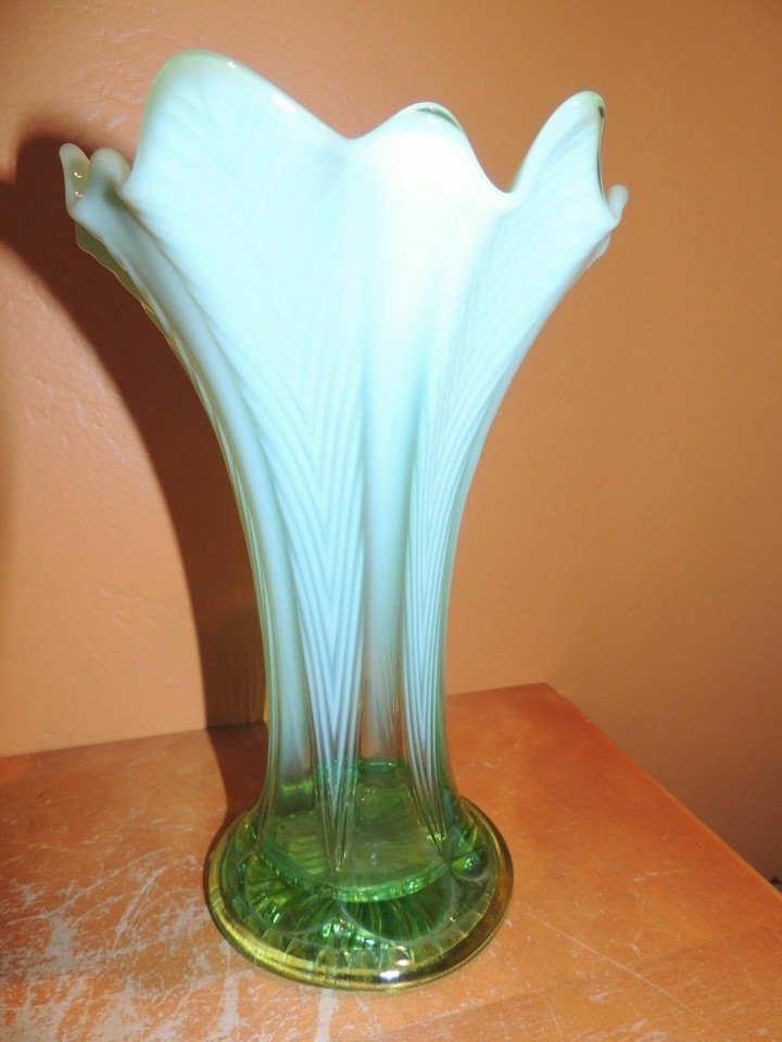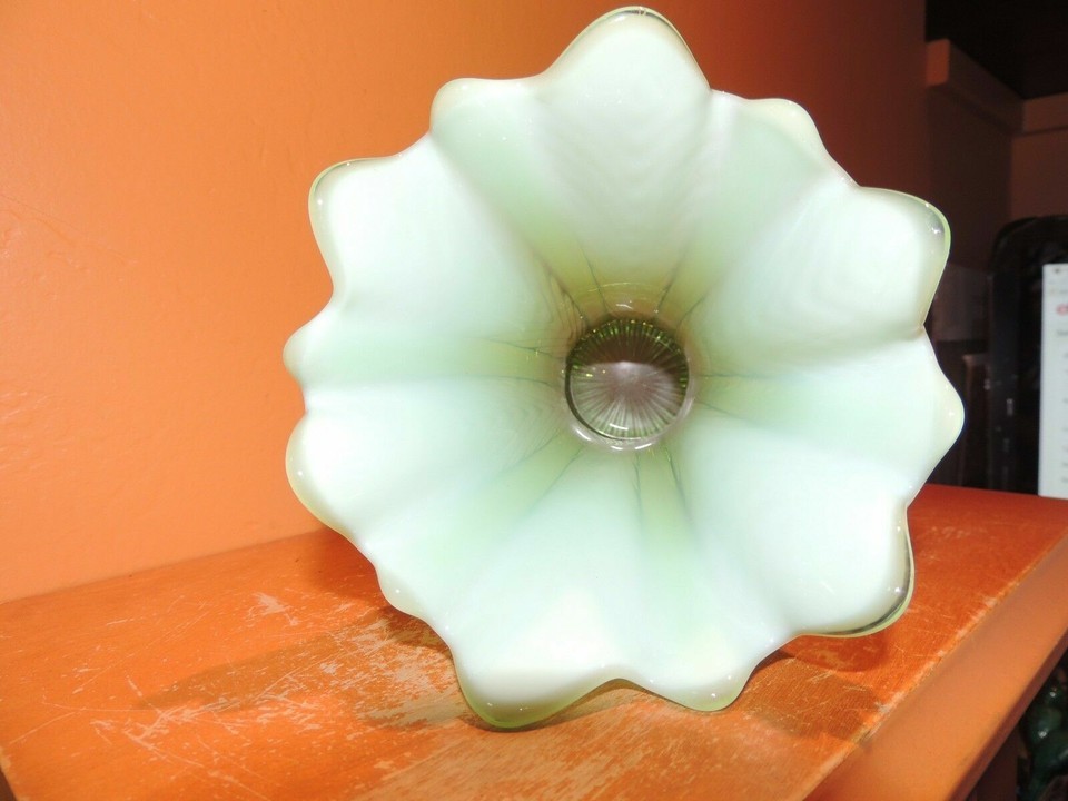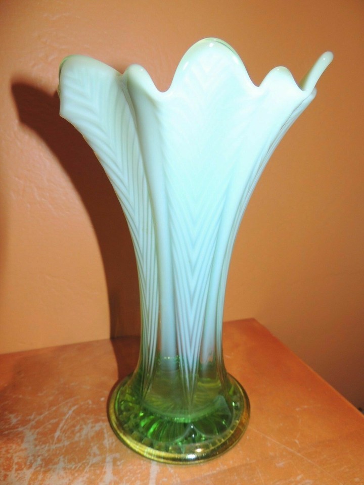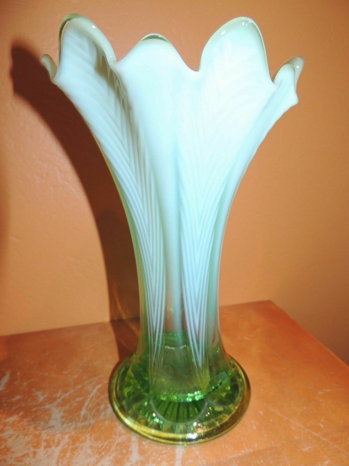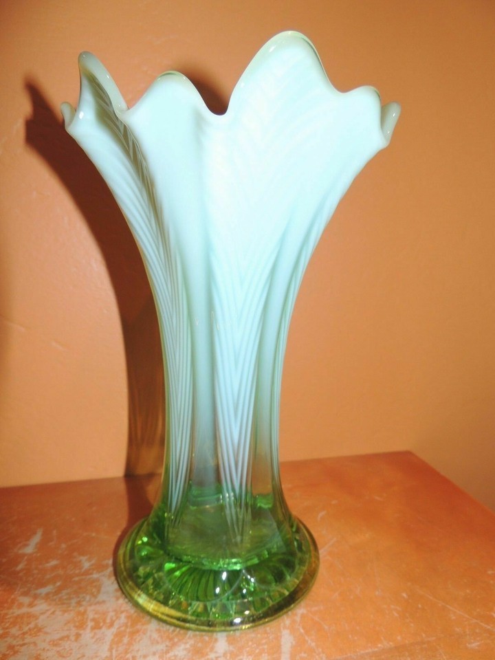 Vaseline Glass Vase 8" Green Opal Opalescent and 22 similar items