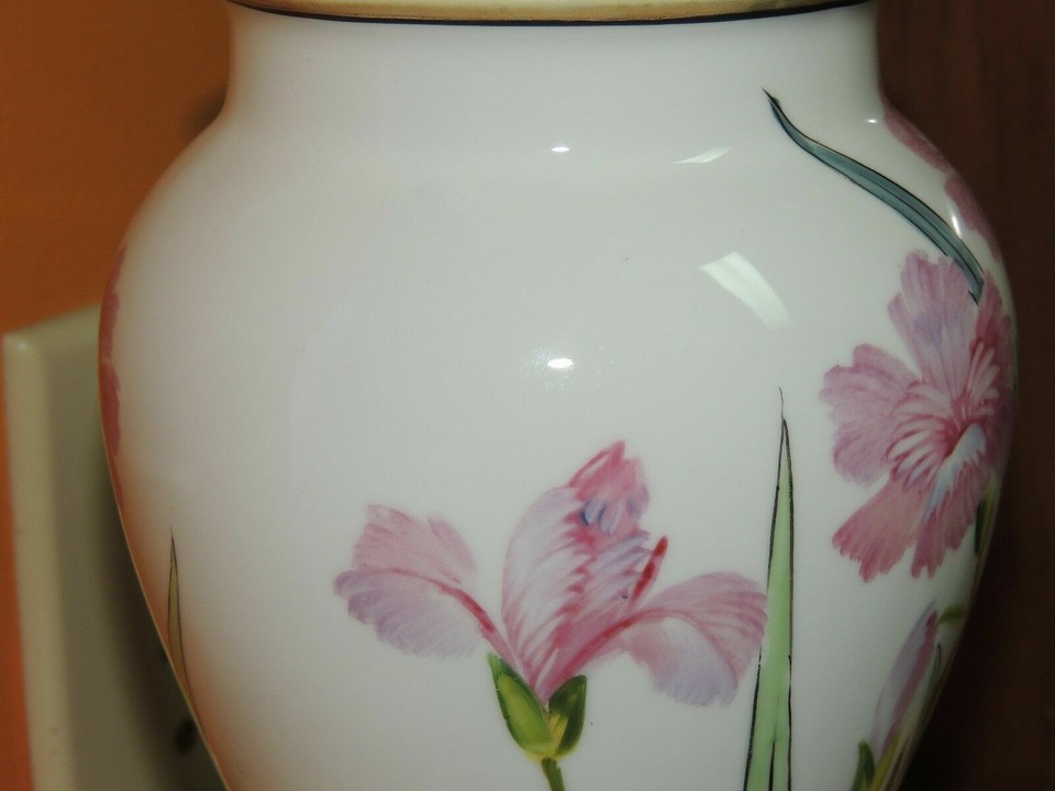 Hand Painted Nippon Vase 7.5" Pink & Green Flowers w/Gold Accents Japanese Iris