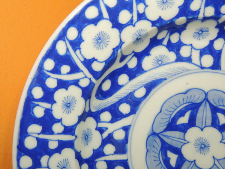 Chinese/ Japanese 9.75" Plate Hand Painted Blue White mark cherry blossom Antiqu