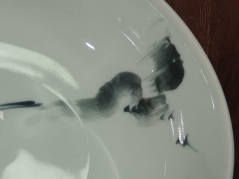 Chinese / Japanese 9.5" Bowl Celadon green hand painted Vintage marked