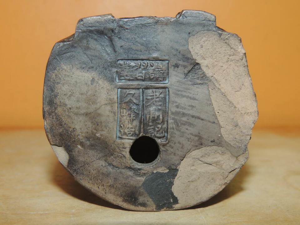 Chinese Figure Black 5" Emperor shale / slate / basalt marked Mudman Antique
