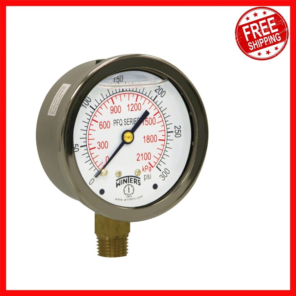The Winters PFQ series brass wetted parts pressure gauge is designed for non-corrosive liquids and gases, featuring a glycerin-filled circular dial encased in durable stainless steel 304 for corrosion resistance. Available in sizes from 1.5" to 4" in diameter, it offers precise measurement with an accuracy of 1.5% or 2.5% of full scale, depending on the dial size. Options include single or dual scales in psi, kPa, bar, and Hg vacuum/kPa, with various NPT connections at the bottom or center back. Built to withstand harsh environments, it has an ingress protection rating of and is equipped with impact-resistant polycarbonate lenses, nitrile rubber seals, and over-pressure limits up to 25%. Ideal for pumps, compressors, hydraulic presses, and pneumatic systems, it combines reliability with versatile installation options.