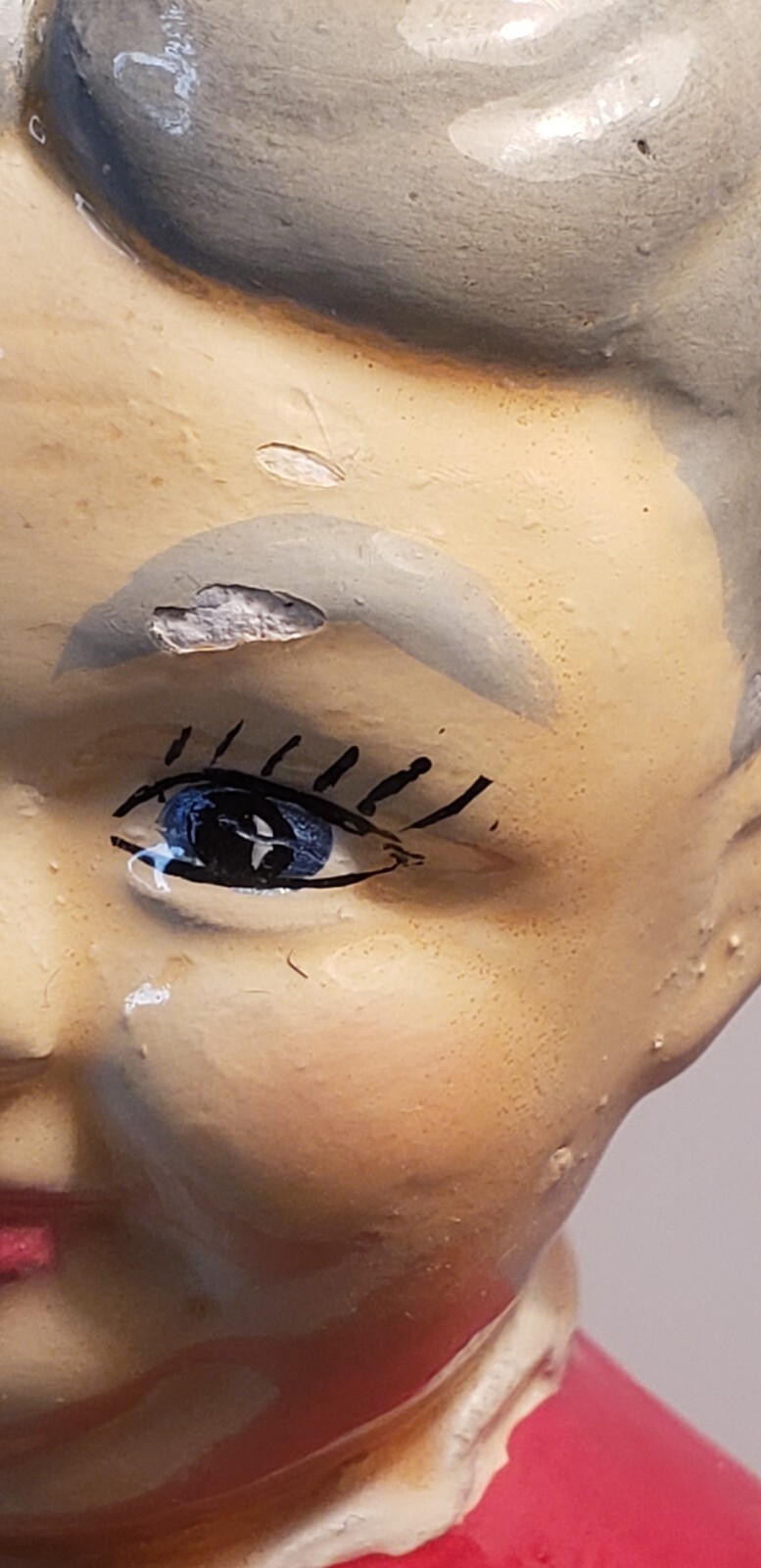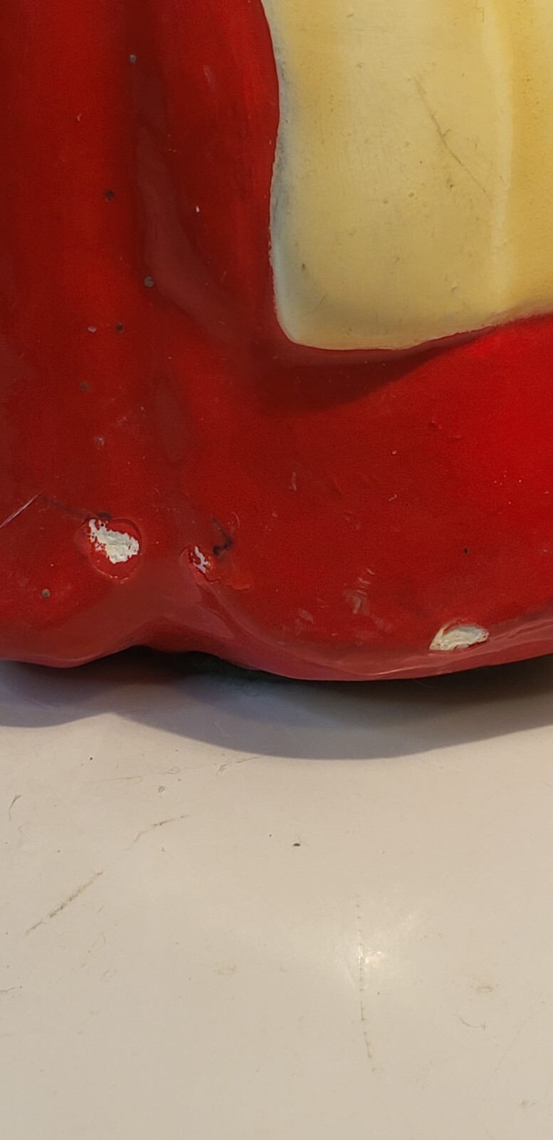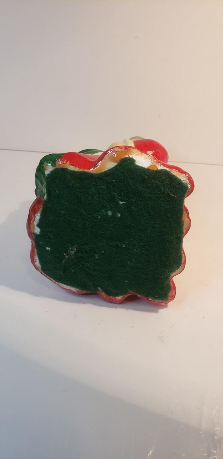The figurine shows some age-related wear with small chips and areas of paint loss, consistent with use and display. Still displays beautifully and brings nostalgic holiday charm.