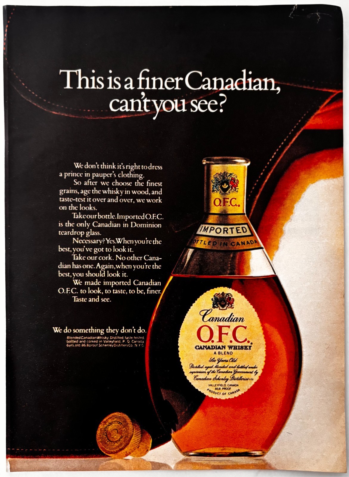 1970 OFC Canadian Blended Whiskey Advertisement Vintage Liquor Distillery F15P