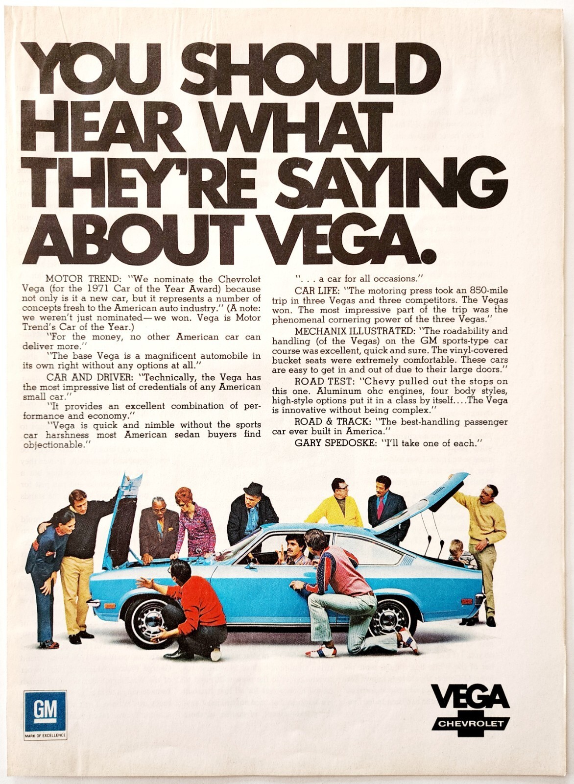 1971 Chevrolet Vega Car Advertisement Automobilia General Motors Chevy DWF11