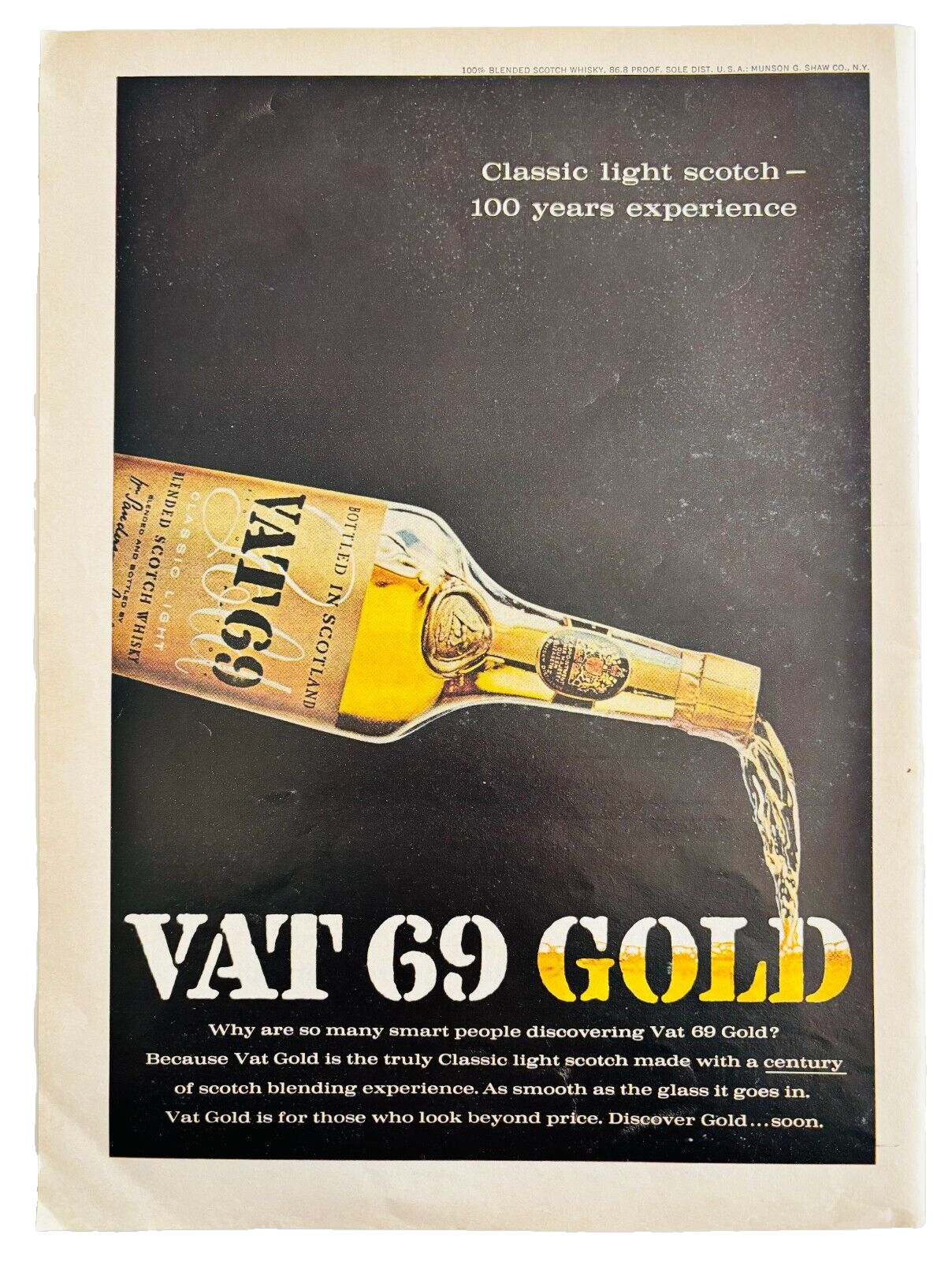 1965 Vat 69 Gold Scotch Whisky Advertisement Distillery Liquor Vintage DWF15